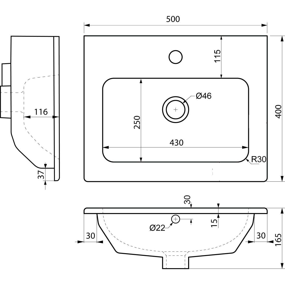 Sapho Practico Waschbecken 50x40 cm rechteckig Möbel weiß 44050