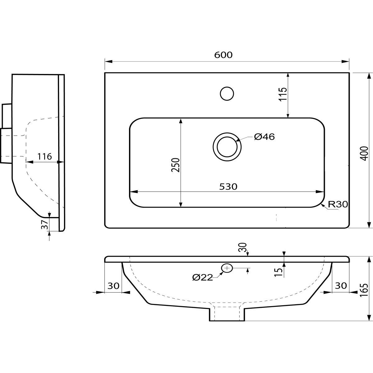 Sapho Practico Waschbecken 60x40 cm rechteckig Möbel weiß 44060