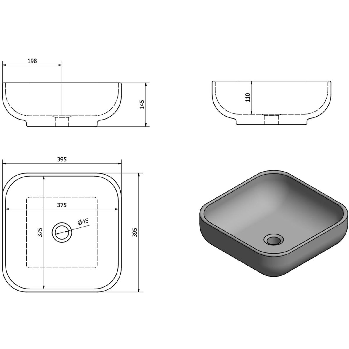 Sapho Prata Waschbecken 39.5x39.5 cm quadratisch Aufsatzwaschbecken weiß AR423