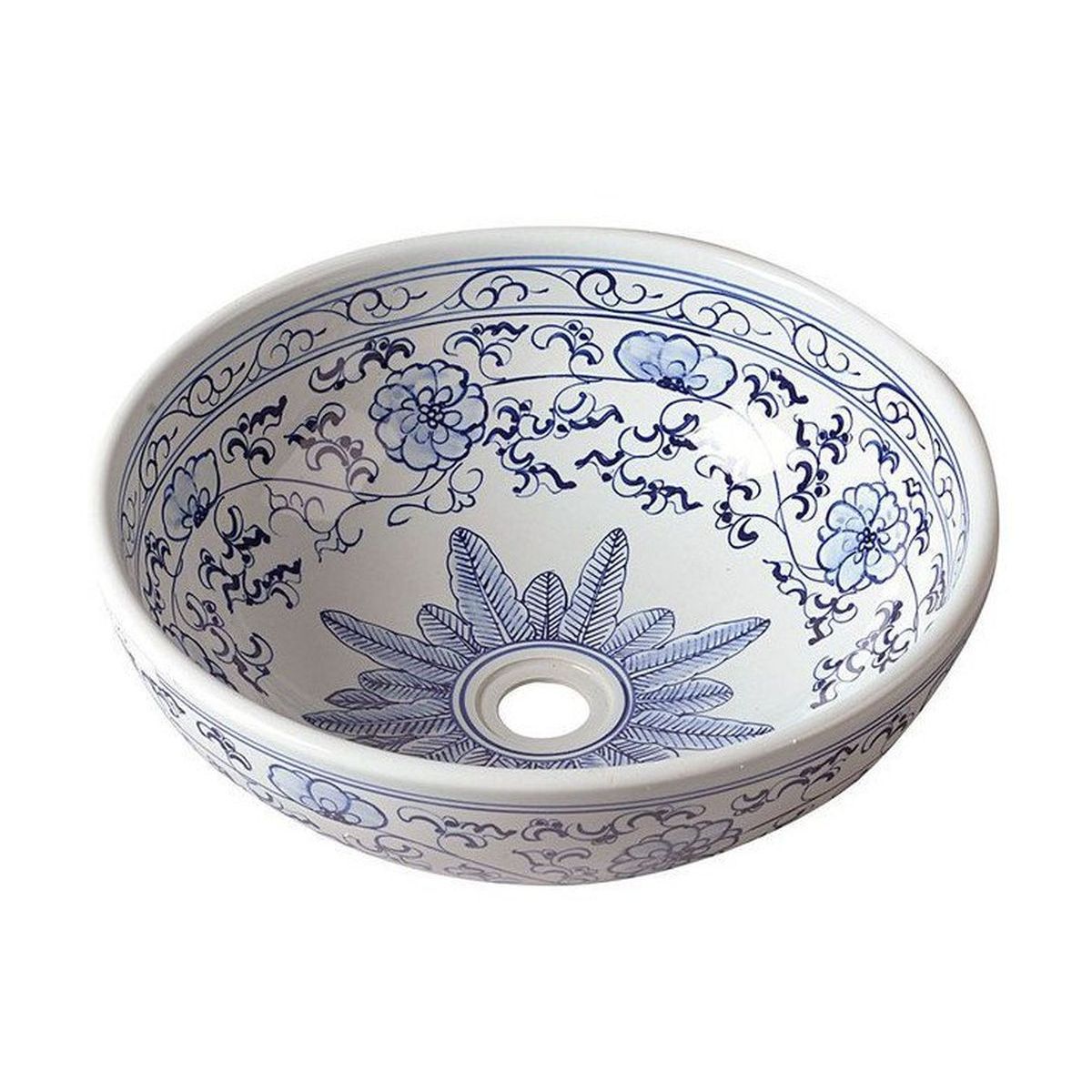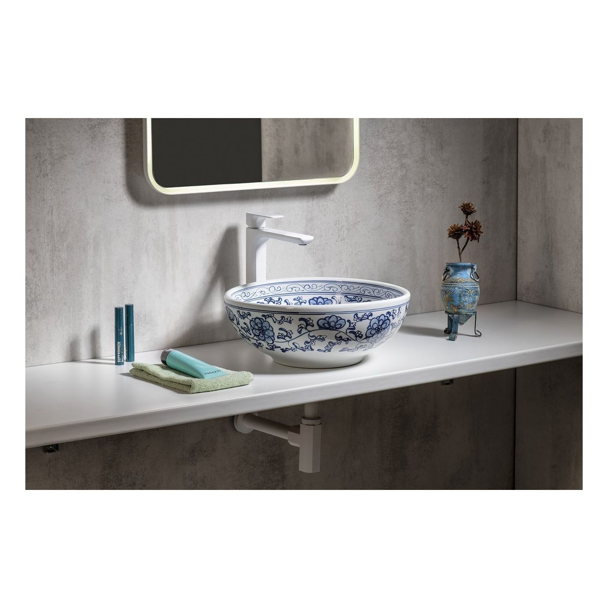Sapho Priori Waschbecken 41x41 cm rund Aufsatzwaschbecken weiß-blau PI012
