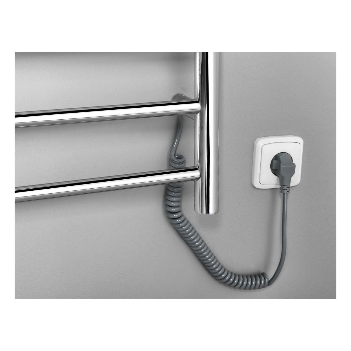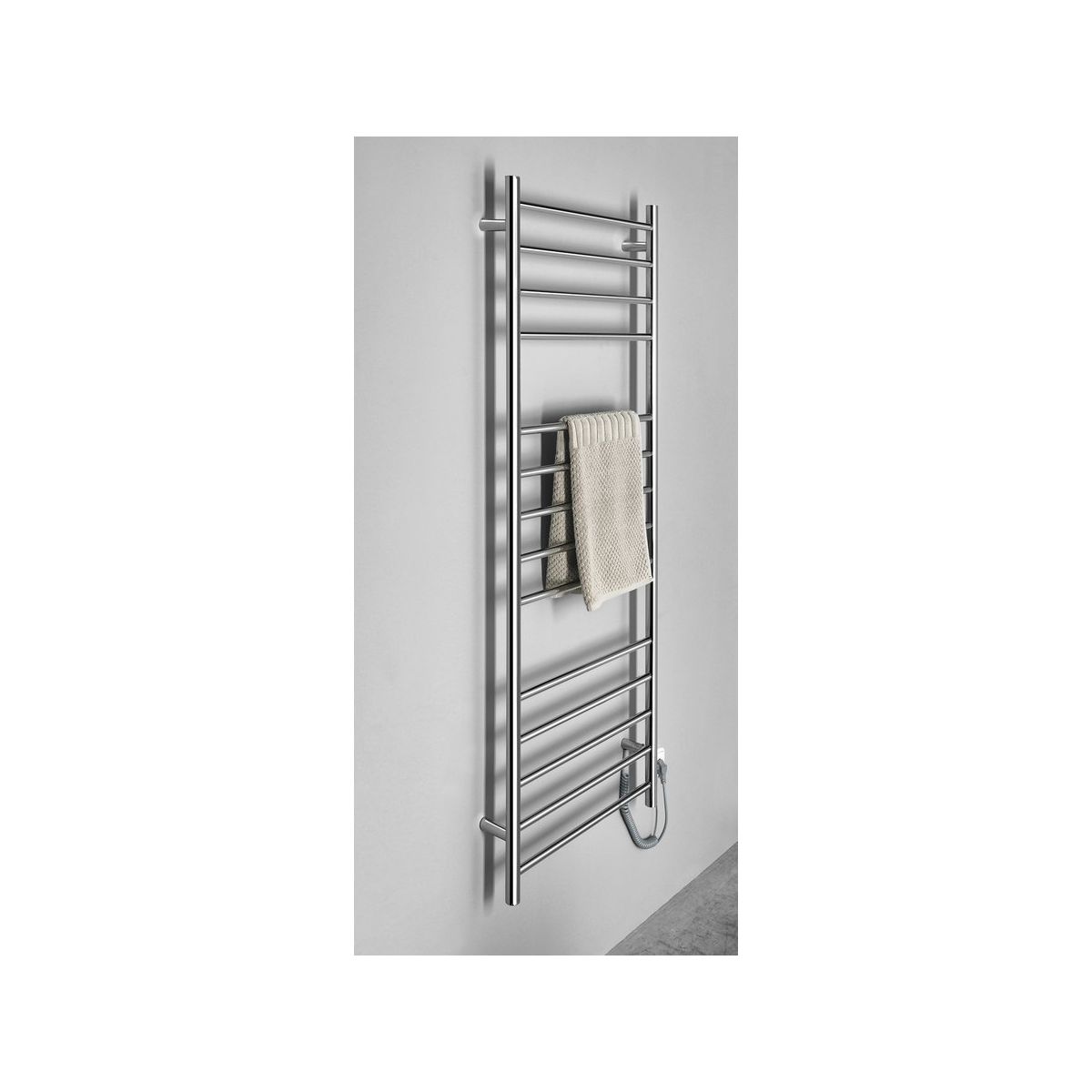 Der elektrische Handtuchtrockner Redondo aus Edelstahl verleiht Ihrem Badezimmer einen einzigartigen Look. Er dient zum Erwärmen und Trocknen von Handtüchern, was Sie besonders im Winter zu schätzen wissen werden. Es muss keine Flüssigkeit eingefüllt werden, im Inneren des Heizkörpers befindet sich ein Widerstandsdraht. Das Gerät kann mit einem Stecker mit verdrilltem Kabel an eine Steckdose angeschlossen oder mit einem empfohlenen Adapter direkt an das Stromnetz angeschlossen werden, um ein klares Erscheinungsbild des Badezimmers zu erzielen.
