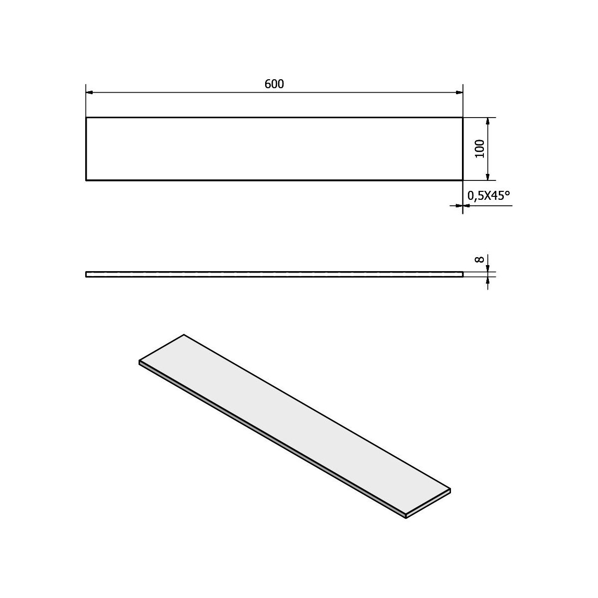 - Maße: 60 x 10 x 0,8 cm