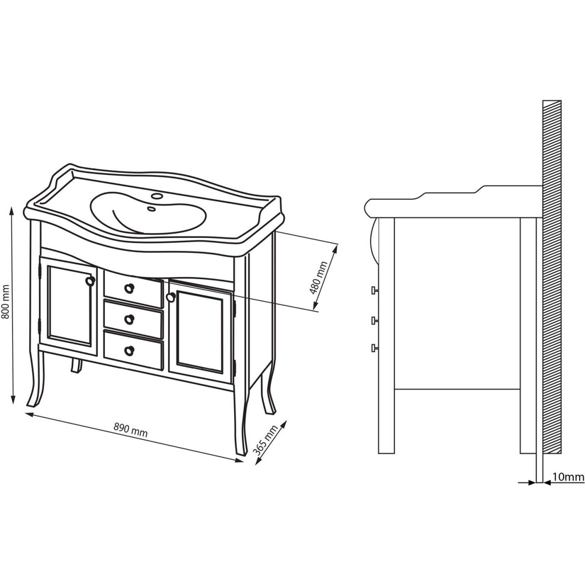 - Maße: 89 x 80 x 48 cm