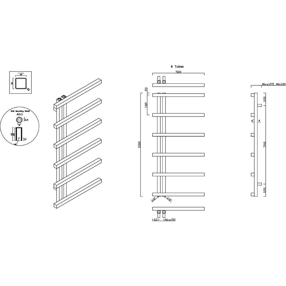 - Wenn der Heizkörper ausschließlich elektrisch, d. h. mit einem Heizelement, beheizt wird, muss zusätzlich eine ½"-Blende für den Heizkörper erworben werden (empfohlen wird, den Heizkörper mit destilliertem Wasser zu befüllen).