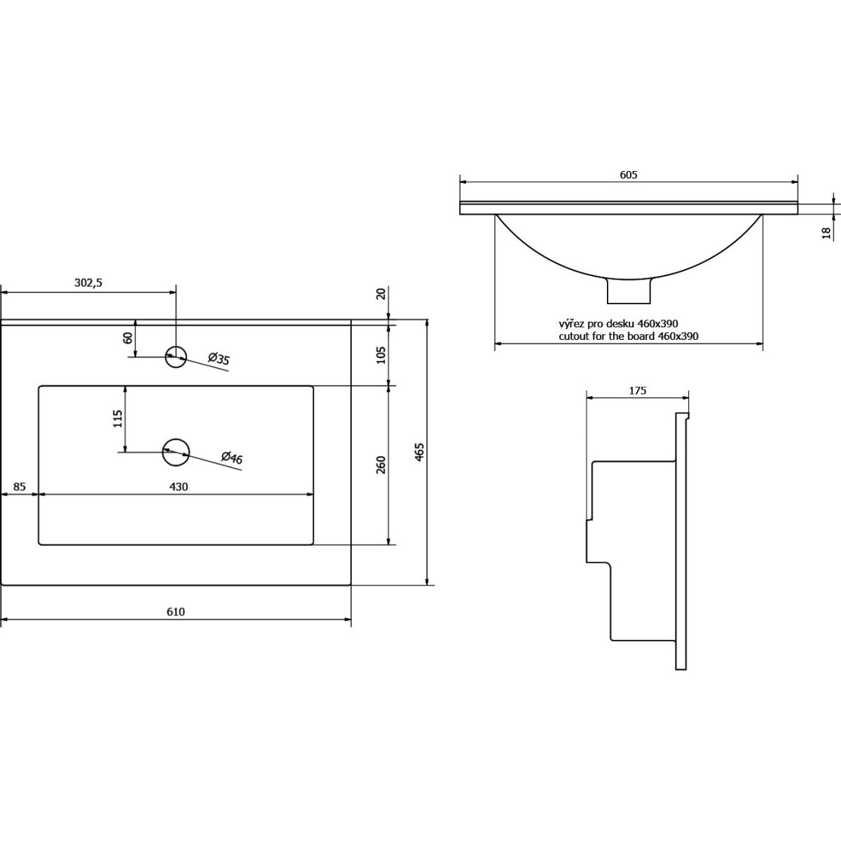 Sapho Slim Waschbecken 61x46.5 cm rechteckig Möbel-Einbauwaschbecken weiß 1601-60