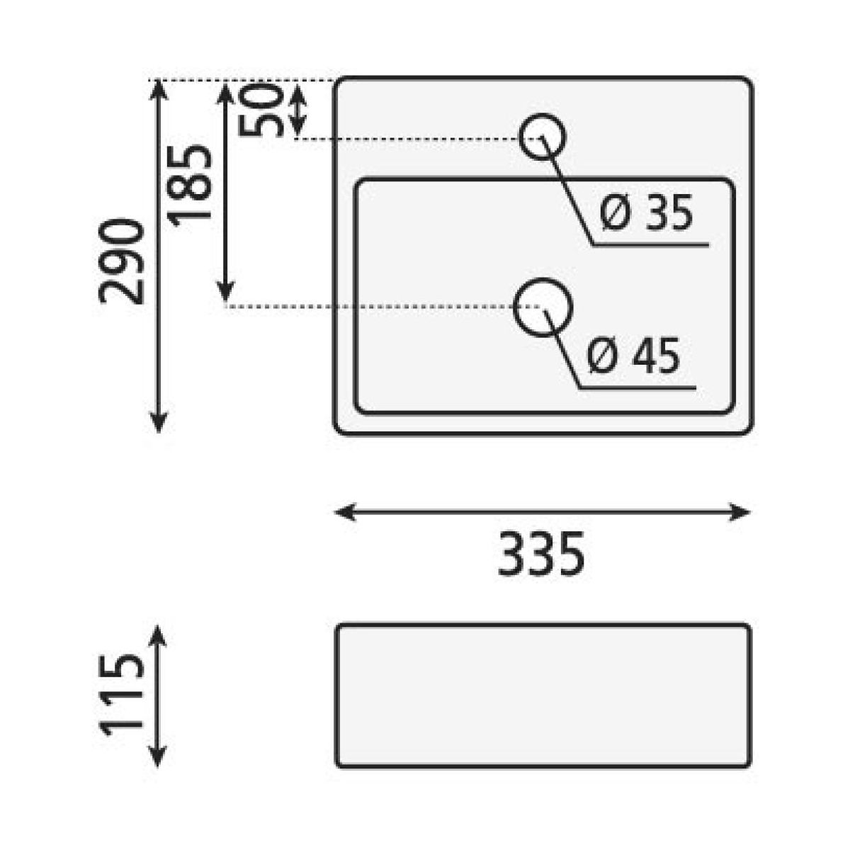 Sapho Small Waschbecken 33.5x29 cm rechteckig Klassisch-Aufsatzwaschbecken schwarz BH7002B