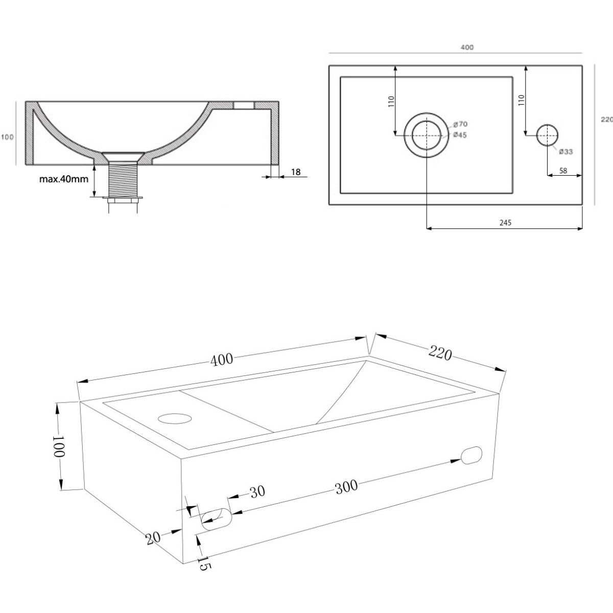 - inklusive Abfluss mit automatischem Waschbeckenstopfen