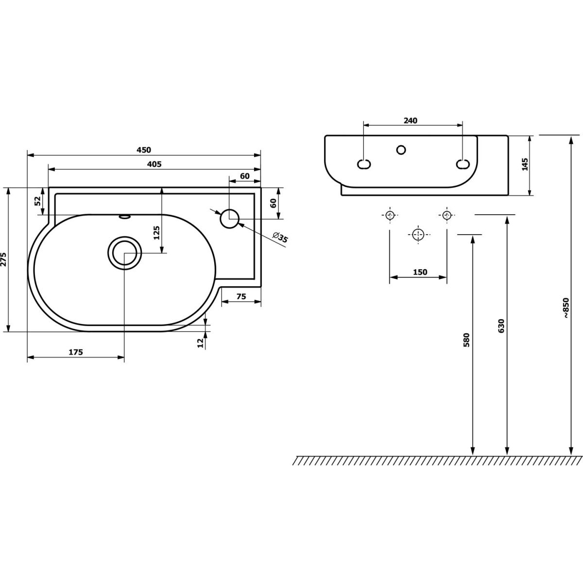 - mit Öffnung für Wasserhahn auf der rechten Seite (linke Version nicht verfügbar)