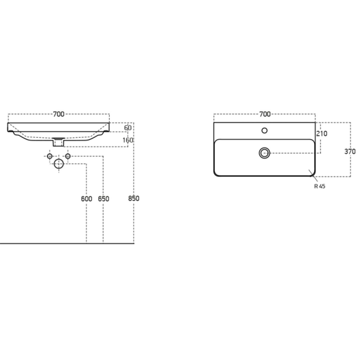 Sapho Thalie Waschbecken 70x37 cm rechteckig Klassisch-Möbel-Einbauwaschbecken weiß TH11070