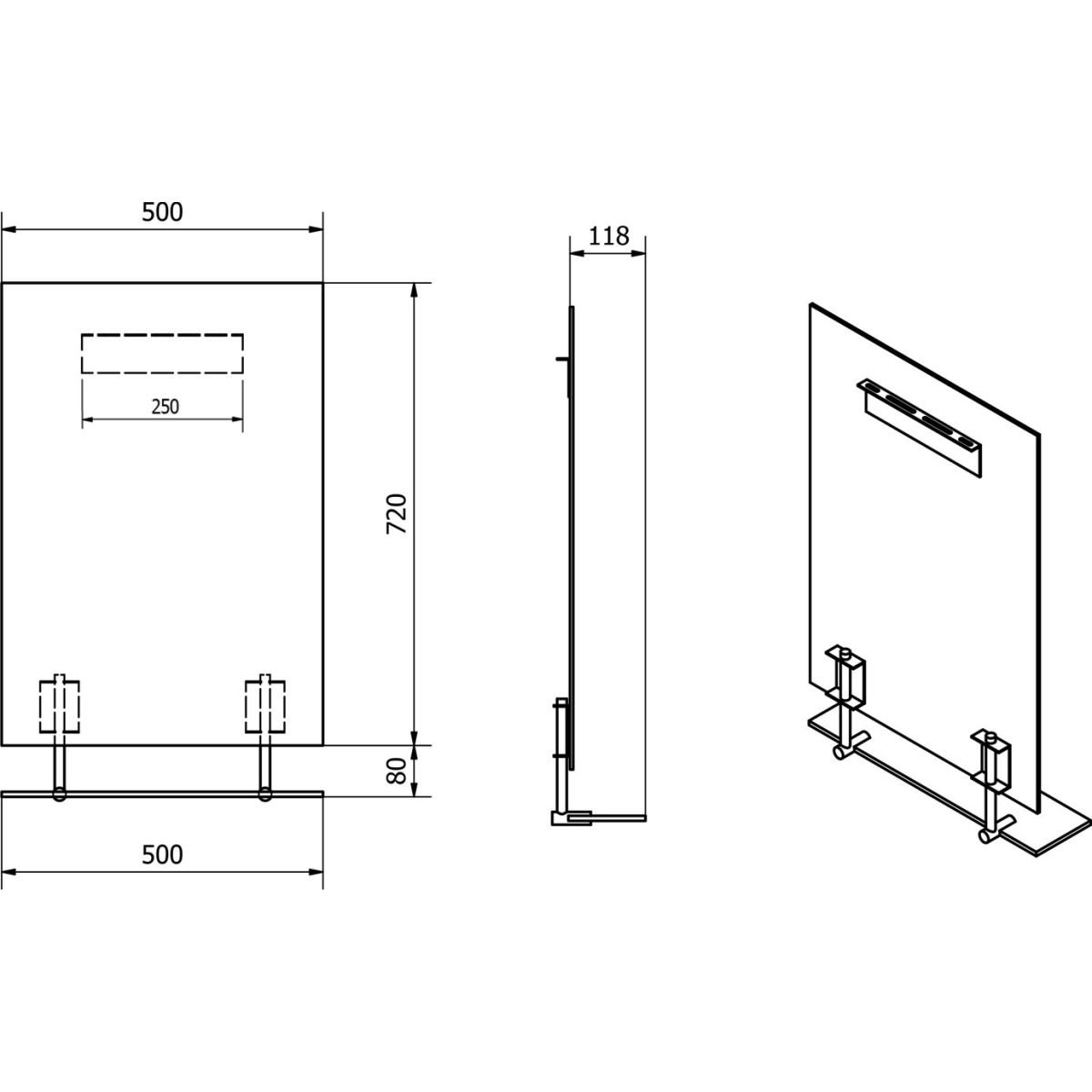 - Möglichkeit, unter dem Spiegel eine elektronische Heizfolie anzubringen, die vor Beschlagen schützt