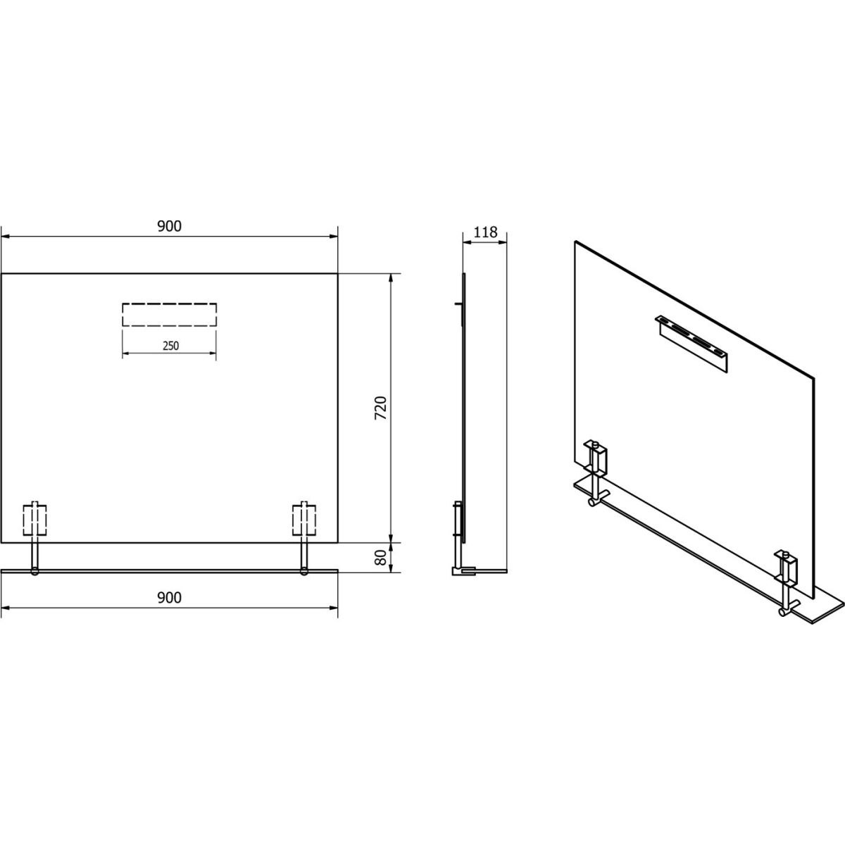 - Größe der Ablage: 90 x 0,8 x 12 cm
