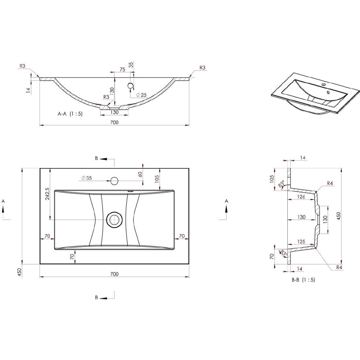 Sapho Yukon Waschbecken 70x45 cm rechteckig Einbauwaschbecken weiß YU070