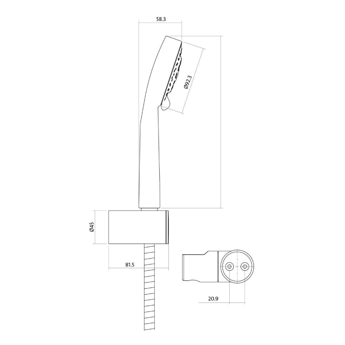 - Handbrause mit einem Durchmesser von 8,5 cm und 5 Funktionen zur Einstellung der Wasserstrahlstärke und -intensität (Modi Rain, Massage, Bubble, Rain&Massage, Rain&Bubble)