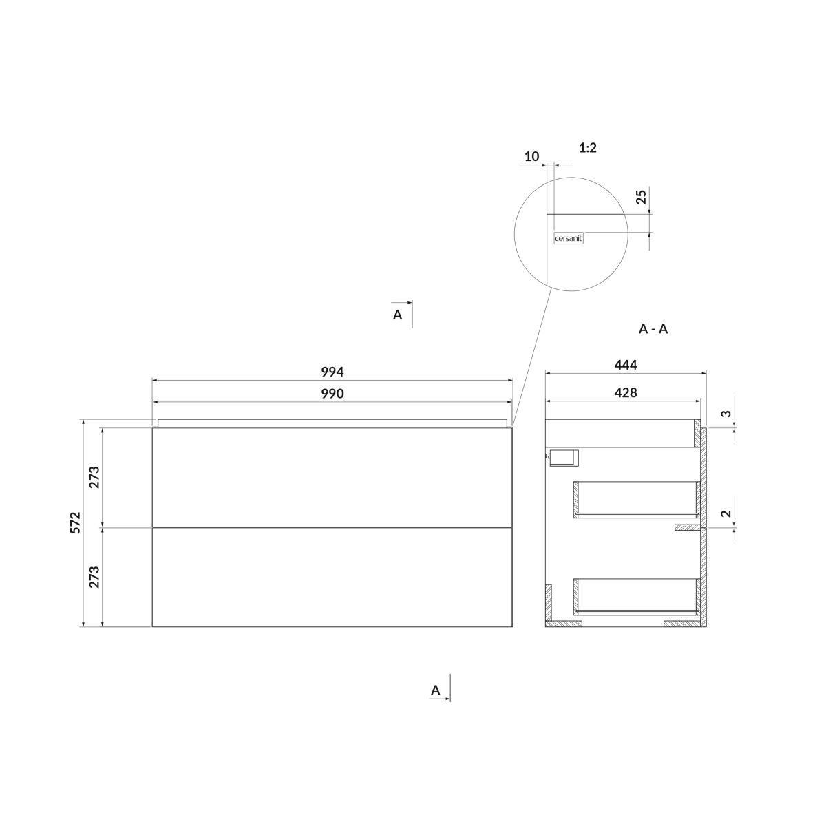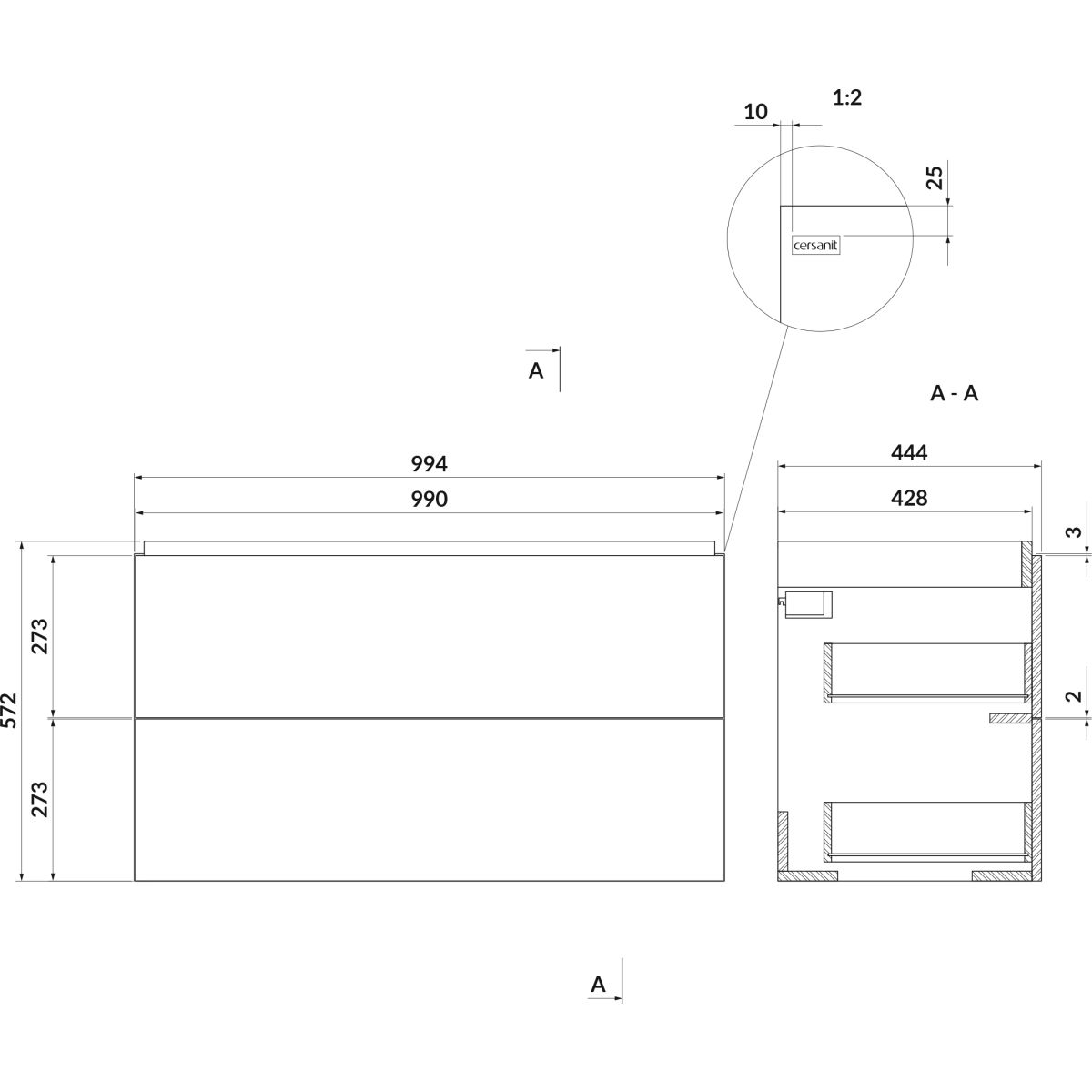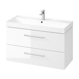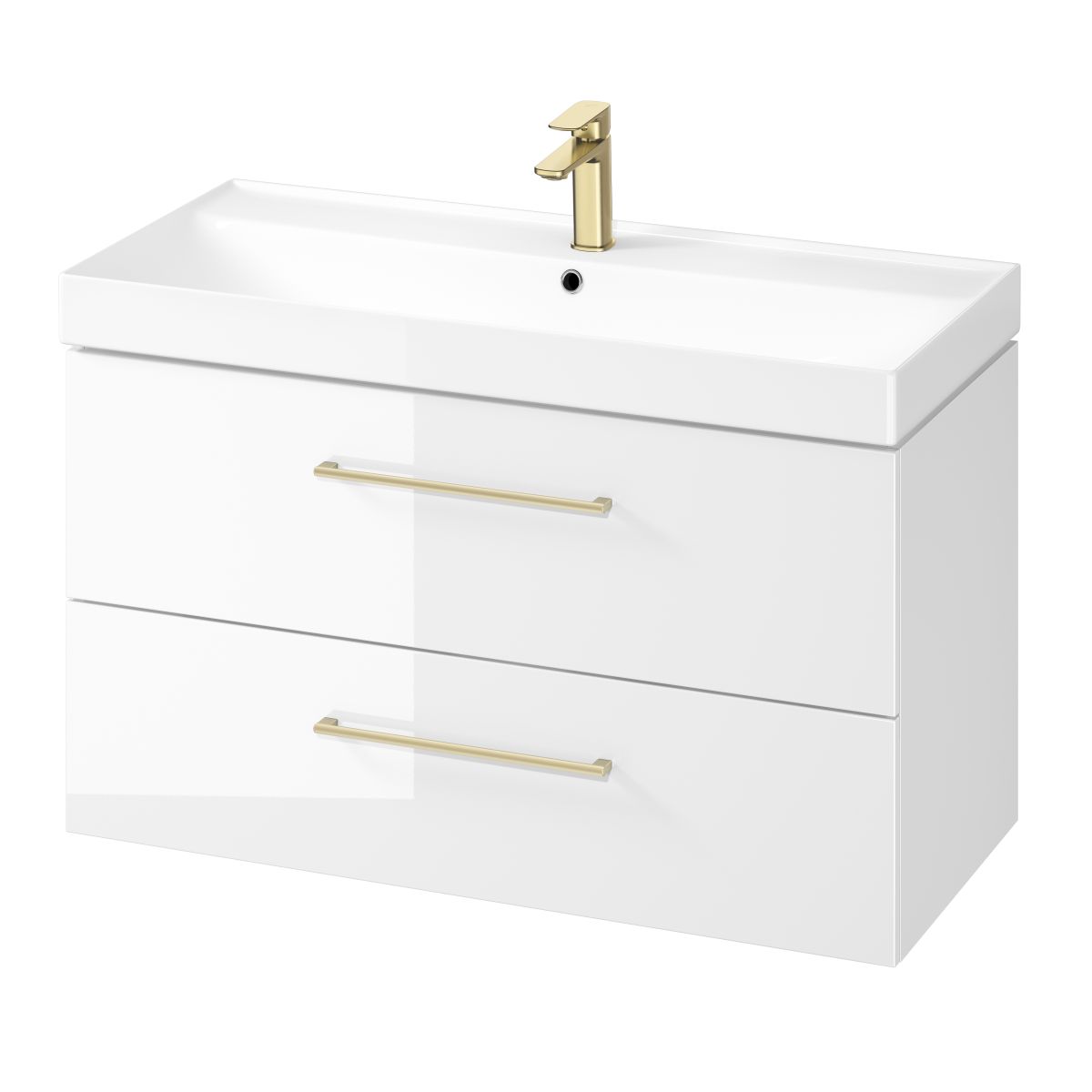 Das Set besteht aus einem hängenden Waschtischunterschrank LARGA 100 mit einem Waschbecken LARGA 100. Die Front und der Korpus des Schranks sind aus lackierter Platte gefertigt. Der Schrank ist mit einem Soft-Close-System und zwei geräumigen Schubladen ausgestattet. Geriffelte Griffe und dekorative Füße sind in 3 Farben (Silber, Gold und Schwarz) separat erhältlich. Das Waschbecken LARGA ist aus ROCKLITE-Keramik gefertigt, wodurch es robust, leicht und extrem dünnwandig ist.
