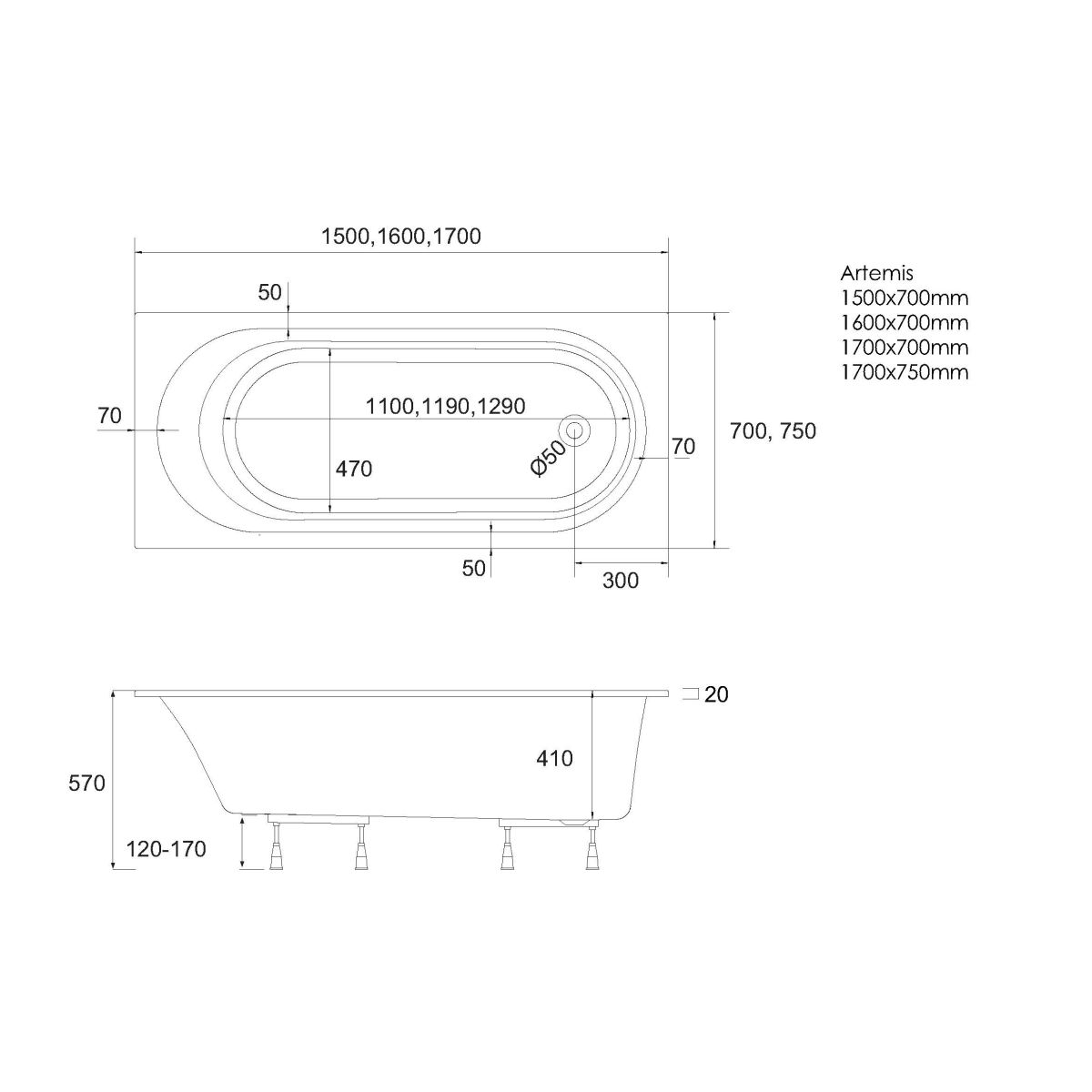 Die Badewanne Artemis wurde mit Blick auf maximalen Komfort für den Benutzer entworfen, dank ihrer ergonomisch geformten Innenflächen, die für ein angenehmes Badeerlebnis sorgen. Der schlanke, elegante 20 mm breite Rand „Slim“ verleiht der Badewanne Leichtigkeit und einen modernen Charakter, wodurch sie sich ideal in den Stil eines zeitgenössischen Badezimmers einfügt.
