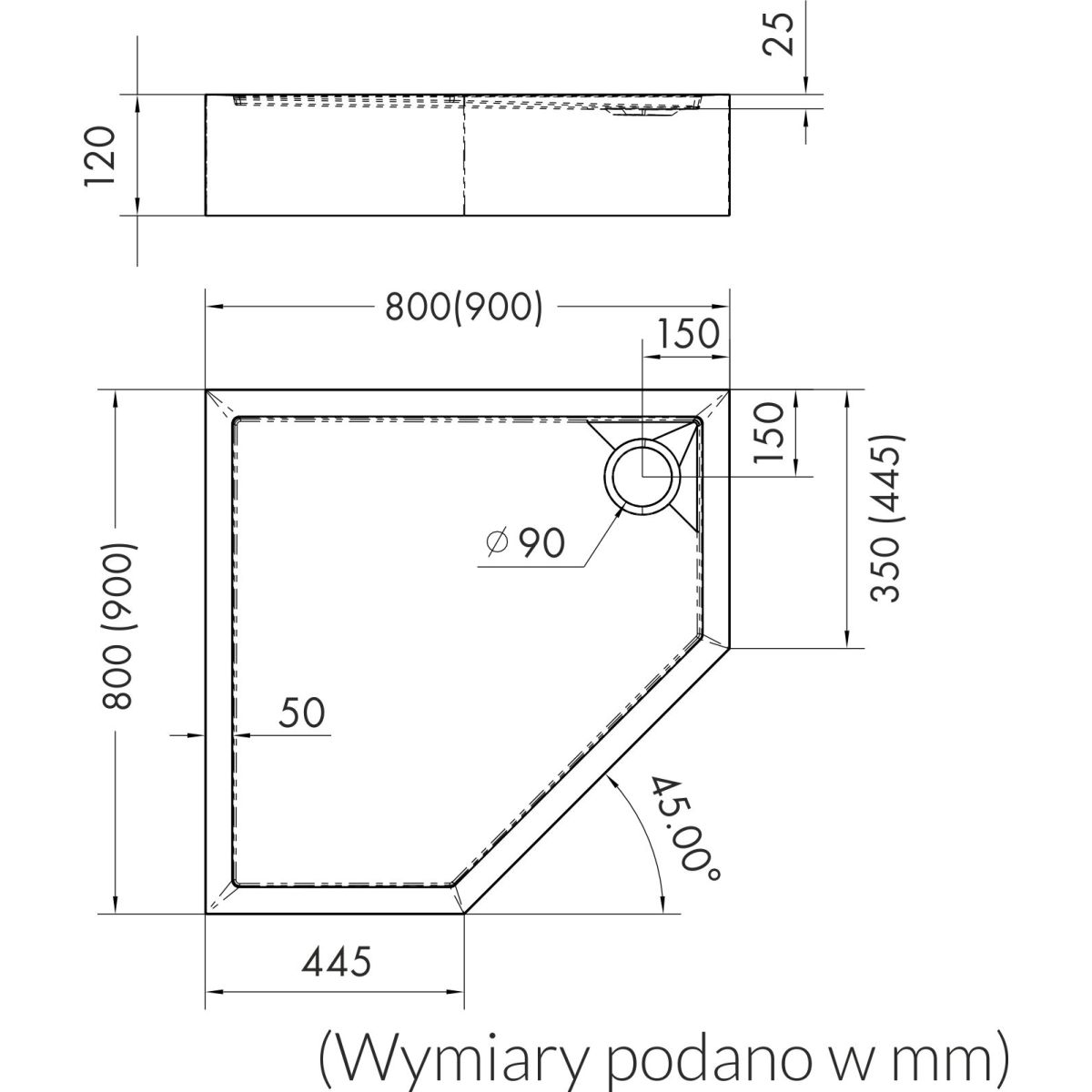 Schedline Cameron Black Stone Fünfeckige Duschwanne 80x80 cm schwarz 3ST.C1PK-8080/C/ST