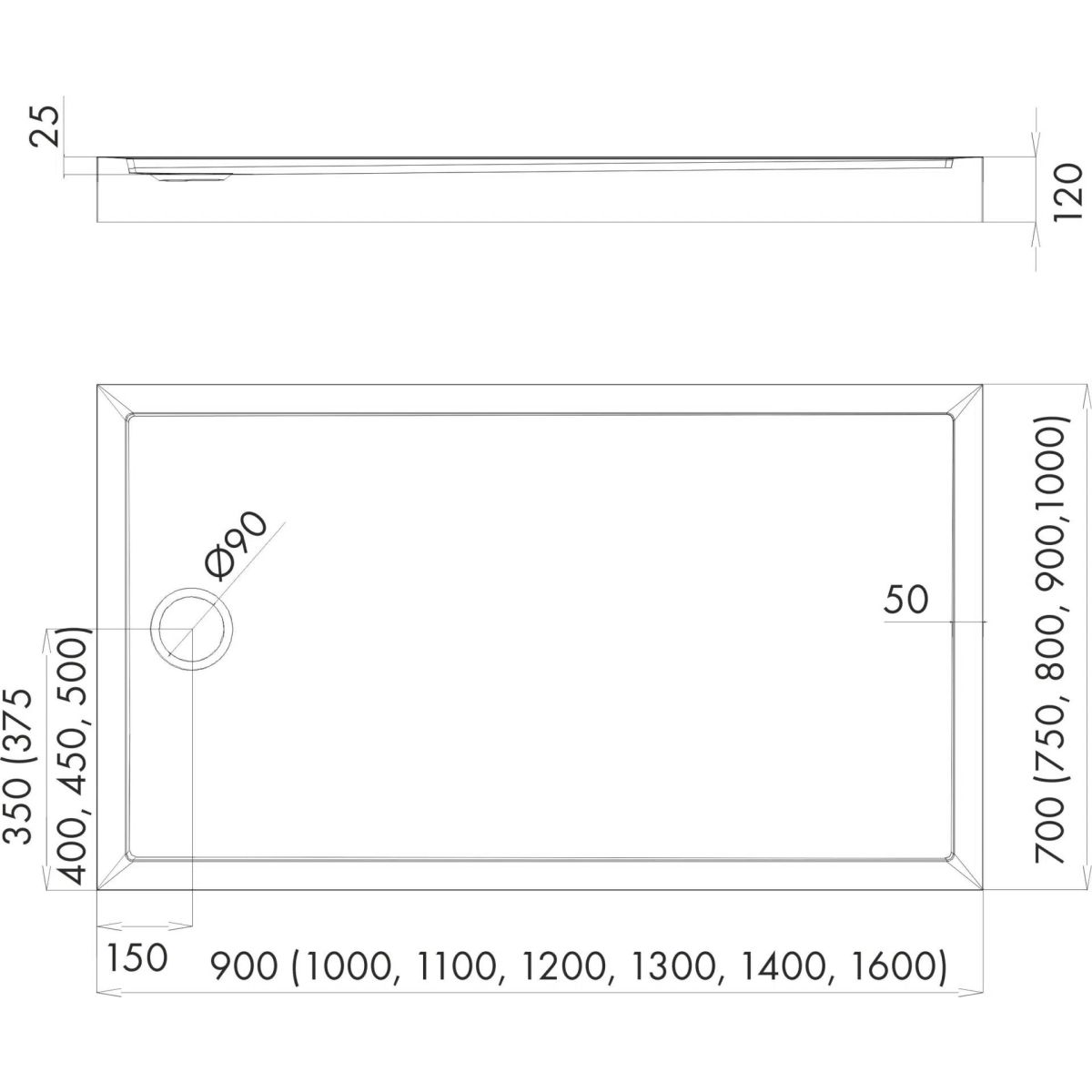 Schedline Cameron Rechteckige Duschwanne 110x90 cm weiß 3ST.C2P-90110