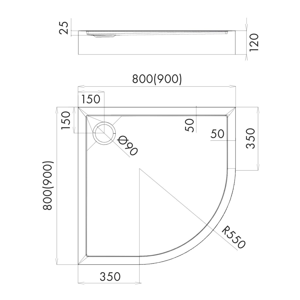 Schedline Cameron Smooth White Halbrunde Duschwanne 90x90 cm weiß 3ST.C1O-9090