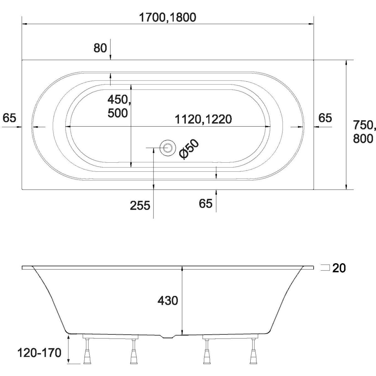 Schedline Celestia Rechteckige Badewanne 180x80 cm weiß 3WSP.C1P-18080