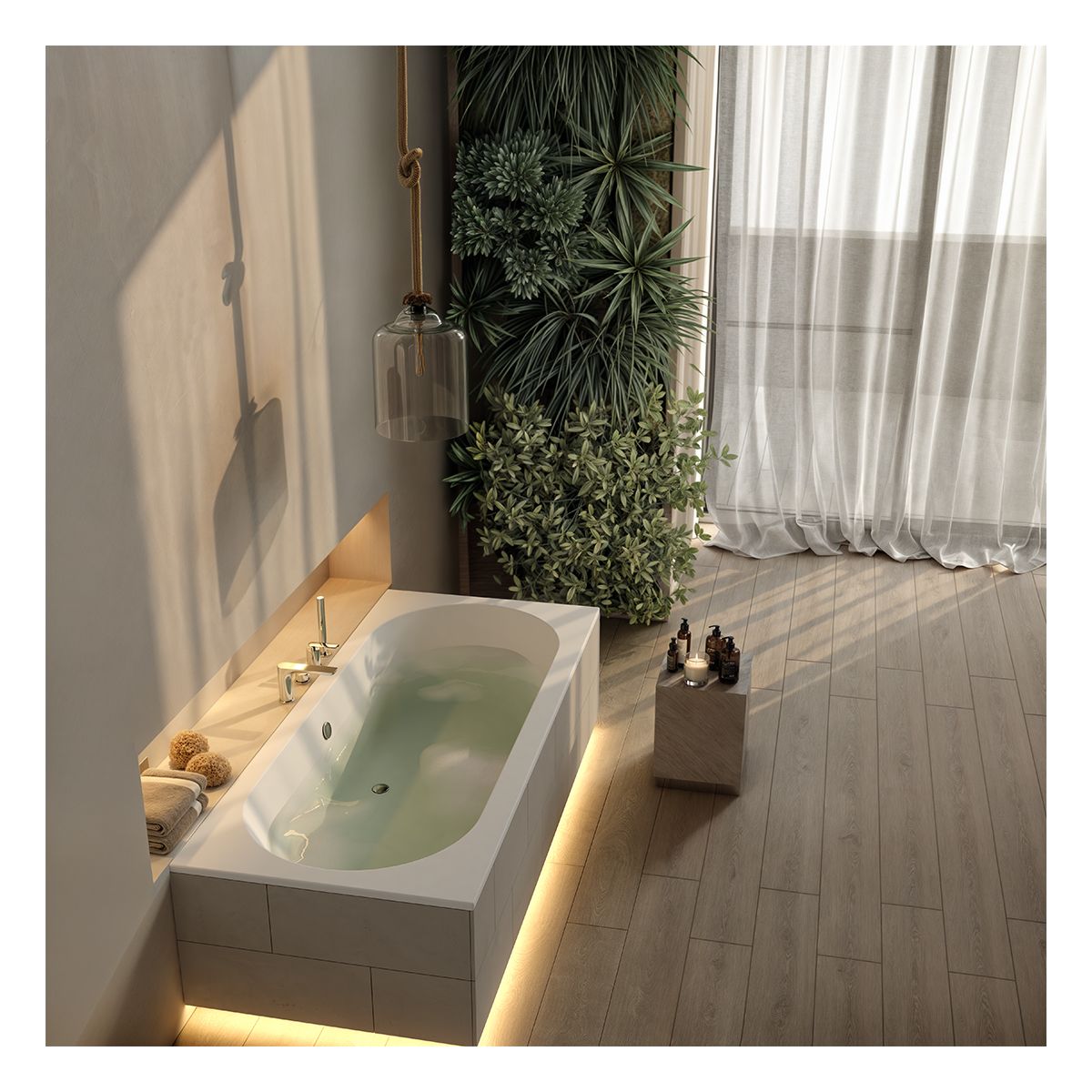 Celestia ist eine moderne Doppelbadewanne mit einzigartigem Charakter, der durch markante, geometrische Linien unterstrichen wird. Die Badewanne ist in einem eleganten, mattweißen Farbton erhältlich, der ihr eine subtile Note verleiht und dafür sorgt, dass sie sich perfekt in vielfältige Einrichtungsstile einfügt. Die Serie Celestia zeichnet sich durch ihre großzügigen Abmessungen aus, die einen komfortablen Raum und ein entspannendes Badeerlebnis für zwei Personen bieten. Ein weiterer Vorteil ist der elegante, nur 20 mm breite Slim-Rand, der dem Badezimmer Leichtigkeit und Modernität verleiht und sich ideal in minimalistische Einrichtungstrends einfügt. Im Lieferumfang ist ein stabilisierender Träger enthalten, der die Langlebigkeit der Badewanne und den Nutzungskomfort erhöht, wodurch die Serie Celestia zu einem Synonym für Komfort und Stil in Ihrem Badezimmer wird. Ihre matte Oberfläche sorgt nicht nur für eine ansprechende Optik, sondern erleichtert auch die Reinigung der Badewanne, was im täglichen Gebrauch ein wesentlicher Vorteil ist.