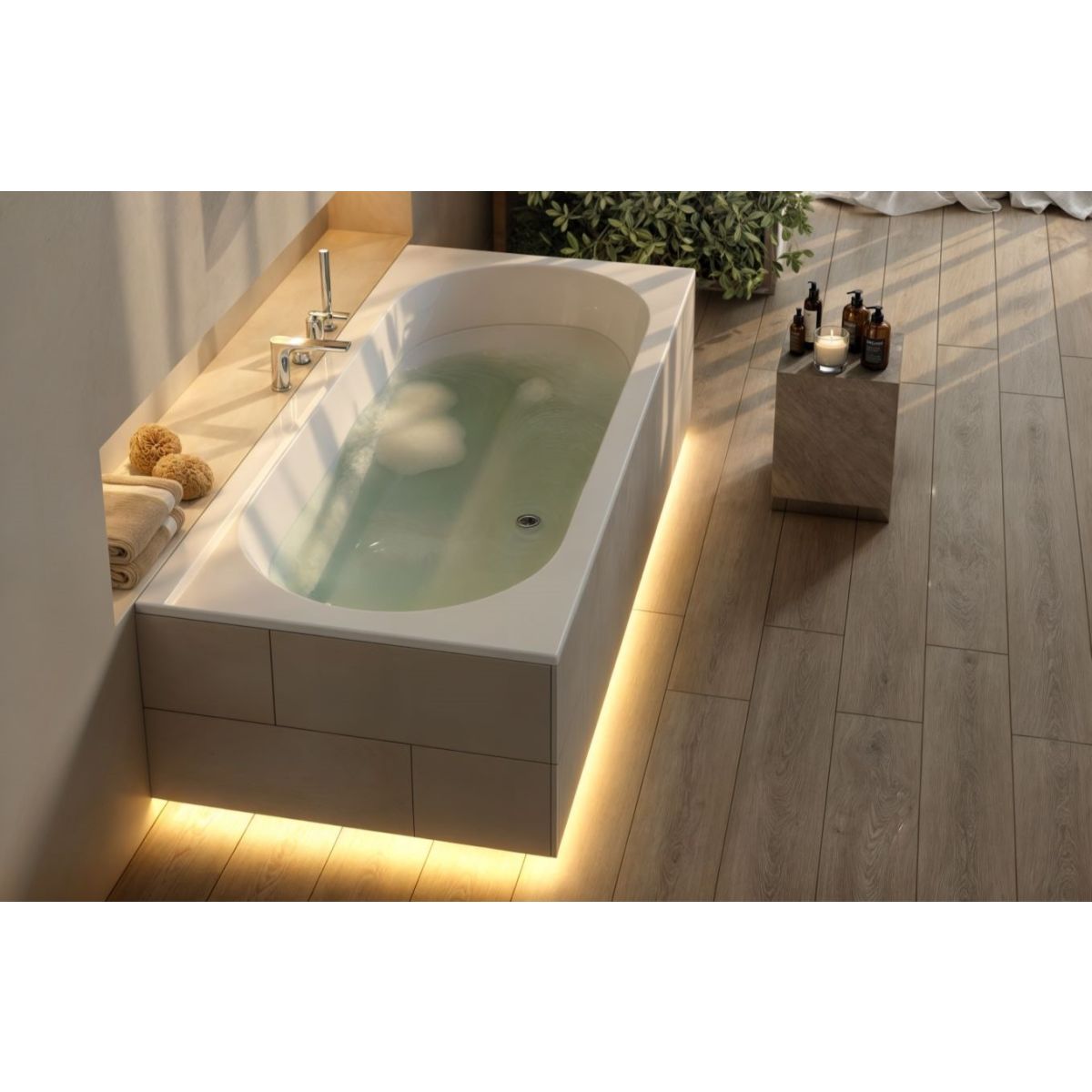 Die ovale Doppelbadewanne ist ein Symbol für Luxus und Geräumigkeit. Sie wurde für diejenigen entworfen, die Entspannung mit Stil lieben. Die elegante weiße Oberfläche reflektiert das Licht wunderschön und sorgt so für ein helles und harmonisches Badezimmer. Die mit der Standard Plus-Technologie hergestellten Badewannen verfügen über eine Antibac®- und Easy to Clean®-Oberfläche. Die Designer haben alles daran gesetzt, dass Ergonomie und Badekomfort an erster Stelle stehen. Die verstärkten Slim-Kanten (20 mm) zeichnen sich durch eine weiche Linie aus, wodurch die Badewanne dem Badezimmer einen Hauch von Frische verleiht. Im Lieferumfang ist auch ein Stabilisierungsrahmen für die Verkleidung mit Fliesen enthalten. Dank der Stabilsound Plus-Technologie sorgt der Rahmen für hervorragende Stabilität. Darüber hinaus sorgt die hervorragende Wärmedämmung dafür, dass das Wasser deutlich länger warm bleibt. Genießen Sie lange, komfortable Momente der Entspannung in dieser perfekten Badewanne für zwei!