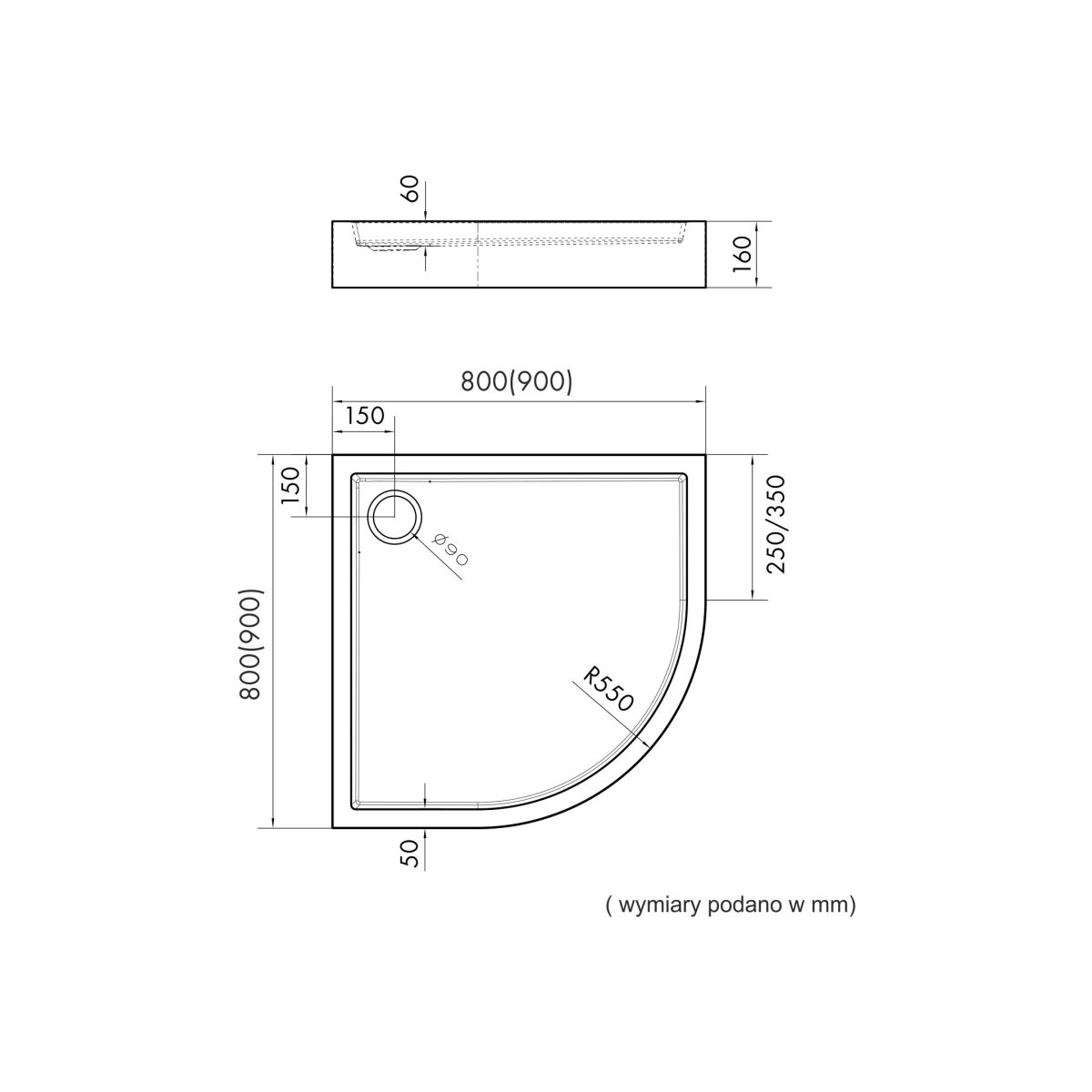 Schedline Favory Plus Halbrunde Duschwanne 90x90 cm weiß 3ST.F1O-9090