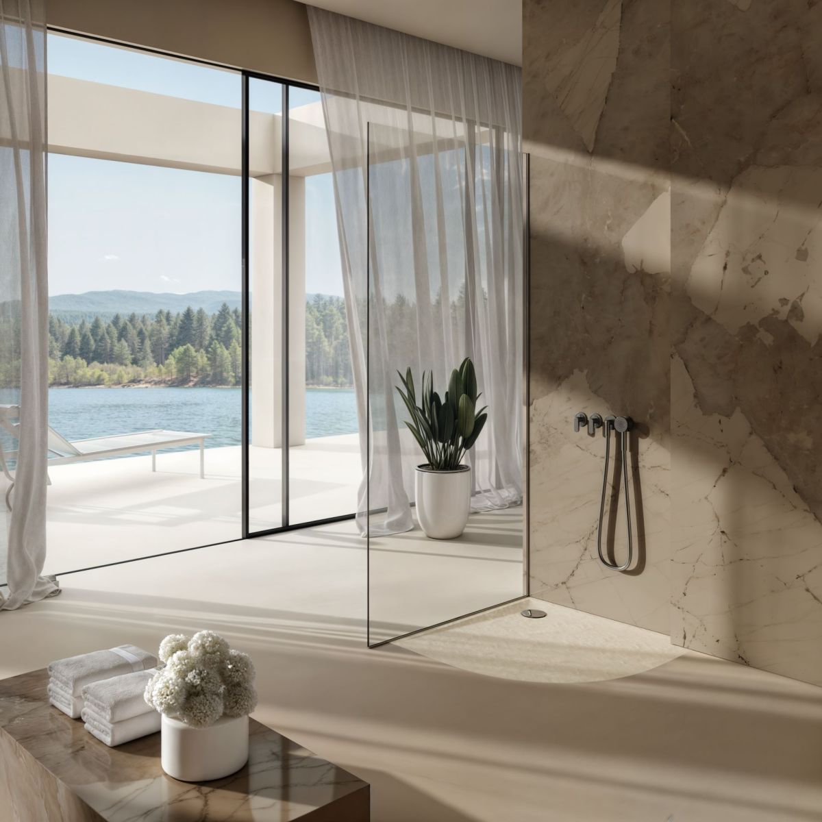 Die Serie Libra Cashmere Stone hat eine matte Oberfläche mit der Struktur von Naturstein in Kaschmirfarbe (RAL 9001). Mit einer Gesamthöhe von nur 3 cm und einem minimalistischen Design setzt sie den Duschbereich effektvoll in Szene und schmückt den Innenraum auf außergewöhnliche Weise. Die Oberfläche „Cashmere Stone” ist äußerst strapazierfähig und verfügt darüber hinaus über die Eigenschaften Easy to Clean® und Antibac®.