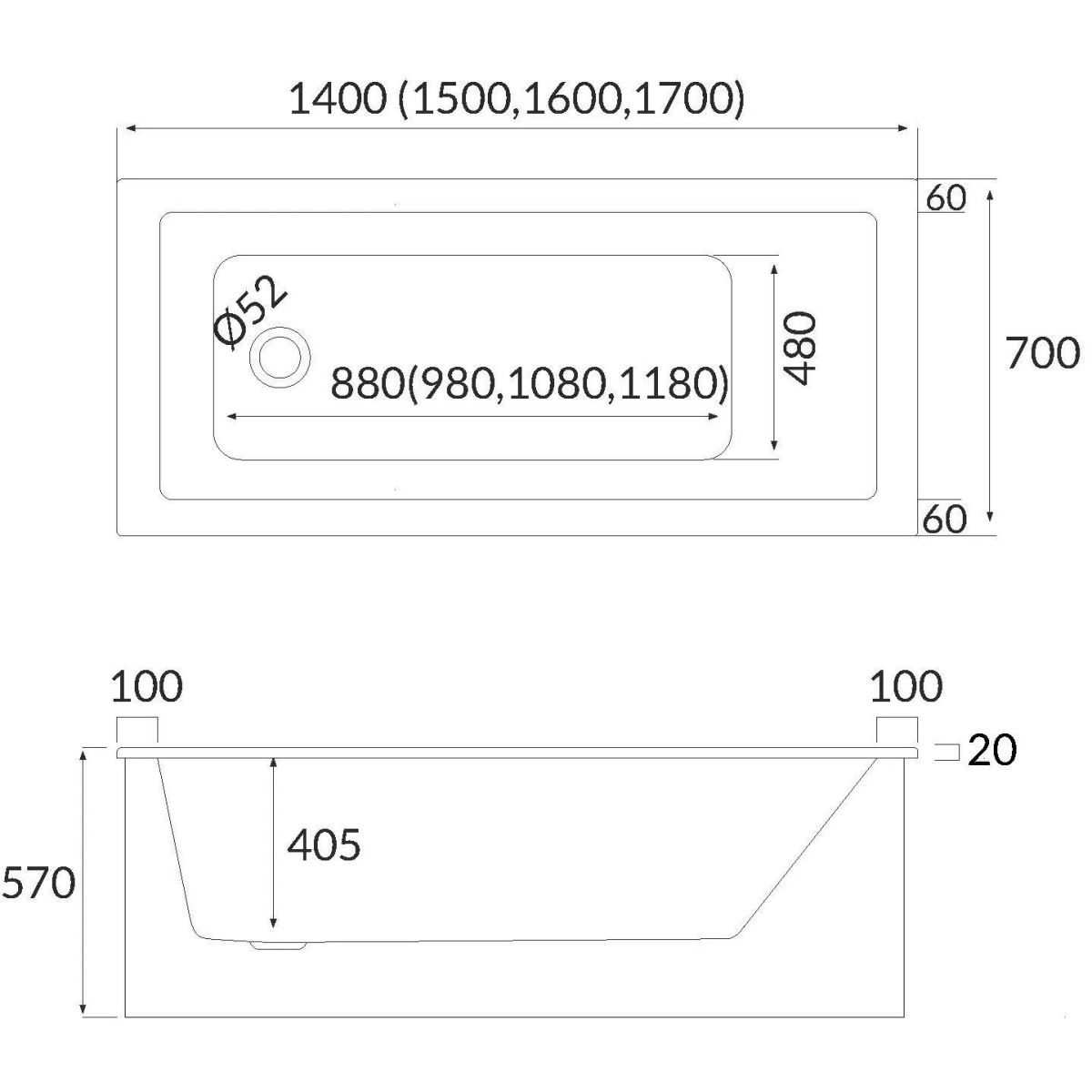 Schedline Maio Rechteckige Badewanne 140x70 cm weiß 3WST.MS2P-14070