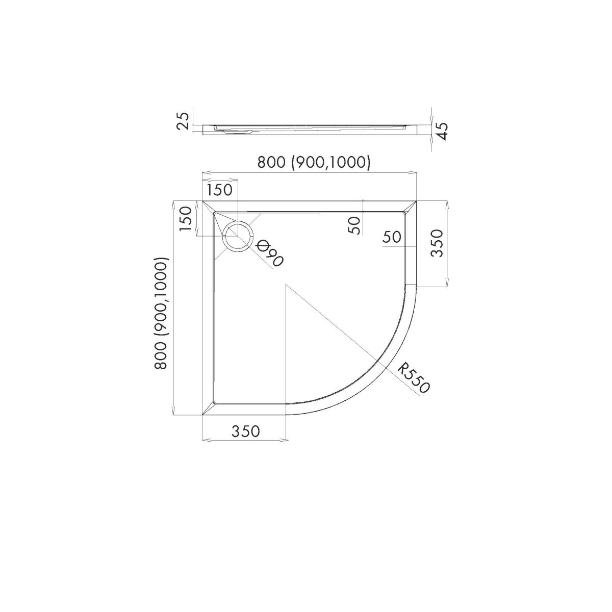 Schedline Sharper Halbrunde Duschwanne 90x90 cm weiß 3S.S1O-9090