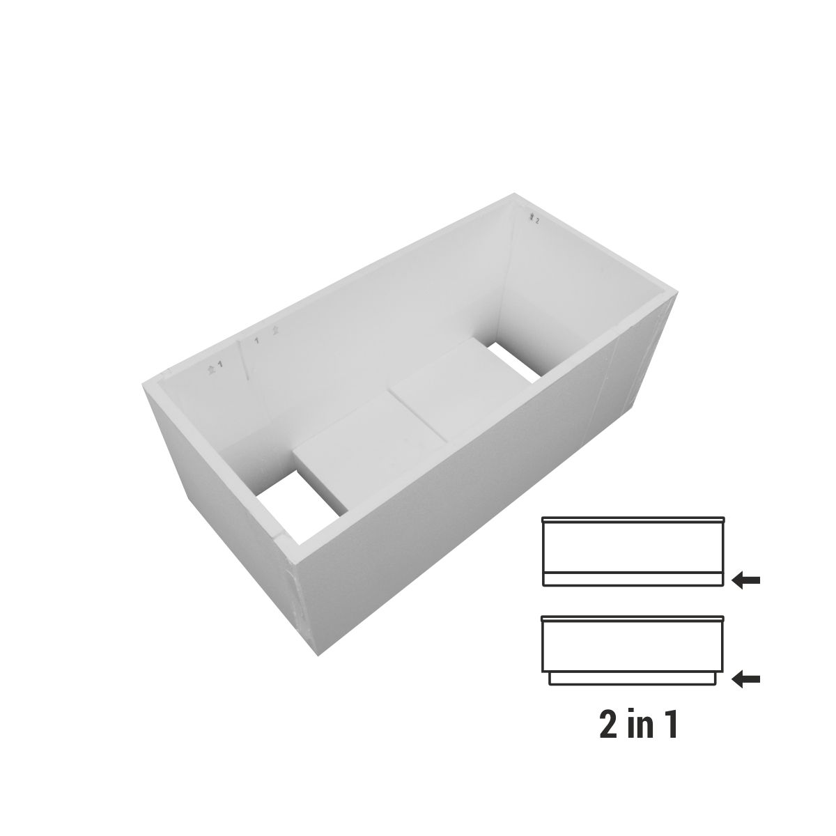 Der Universalhalter Sonaria ermöglicht den dauerhaften Einbau von rechteckigen Badewannen mit einer Länge von 140 bis 180 cm und einer Breite von 70, 75 und 80 cm. Der Universalhalter kann sowohl gerade als auch mit Ausschnitt für Füße/LED montiert werden.