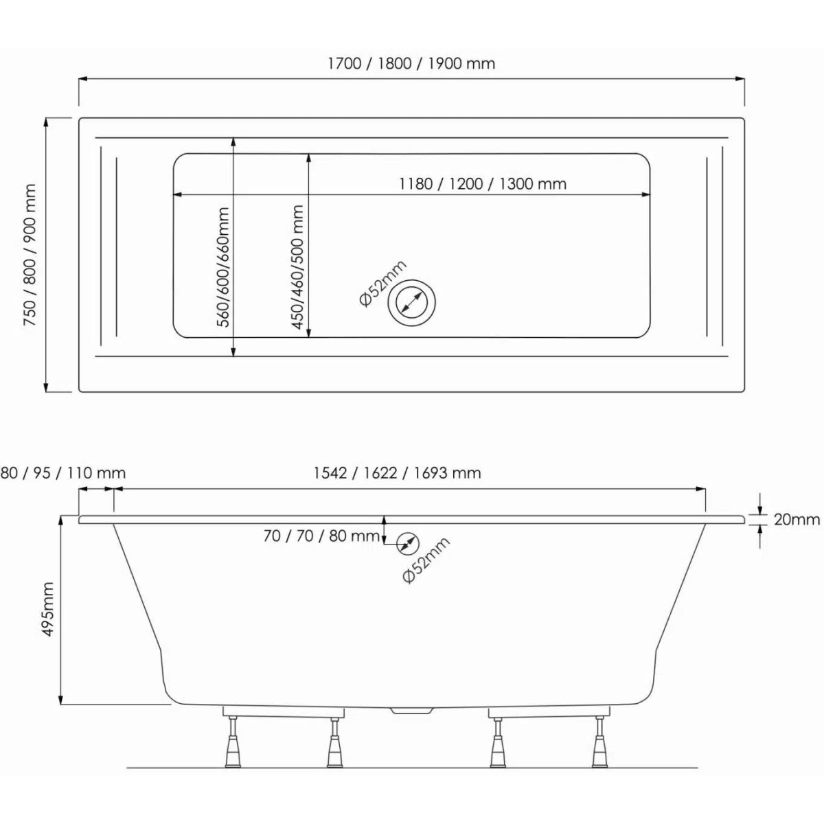 Schedline Vinca 2.0 Rechteckige Badewanne 180x80 cm weiß 3WST.V3P-18080