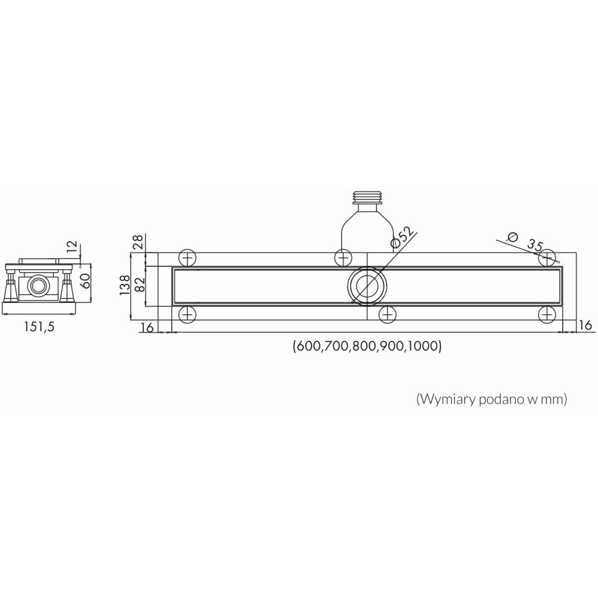 Schedpol Base-Low Duschrinne 80 cm stahl OLSL80/ST-LOW