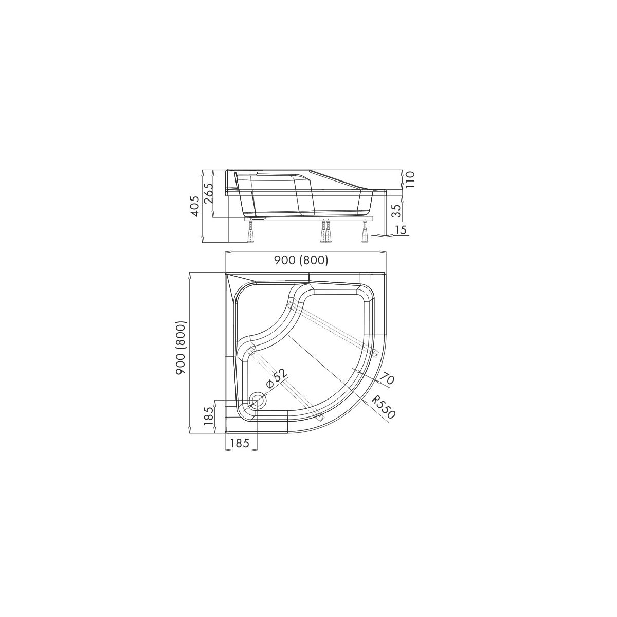 Schedpol Bona Halbrunde Duschwanne 80x80 cm weiß 3.238