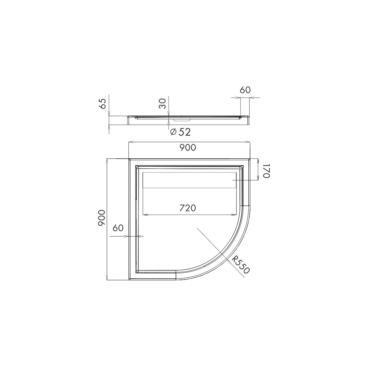 - Durchmesser des Abflusses: 52 mm