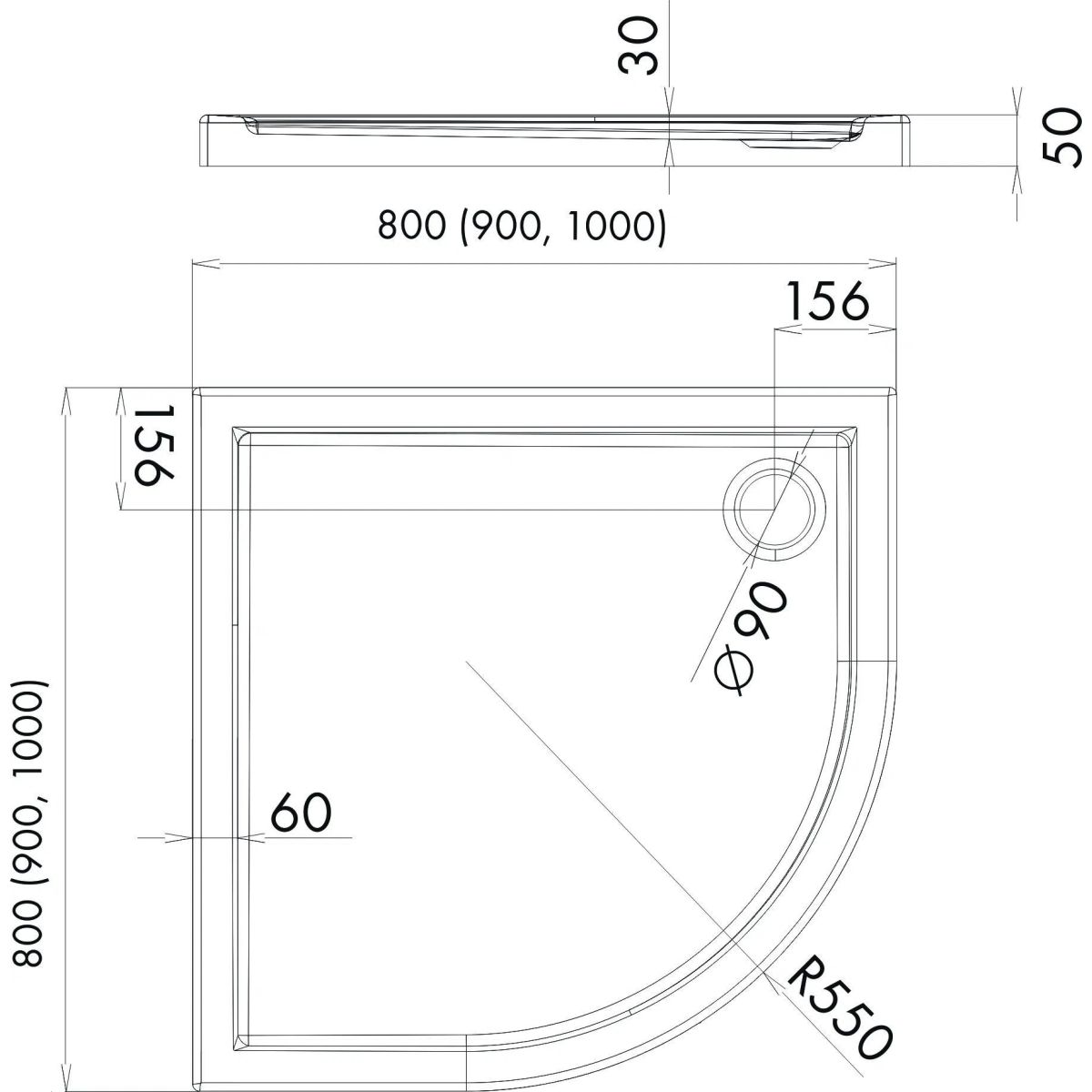 - Durchmesser des Abflusses: 90 mm