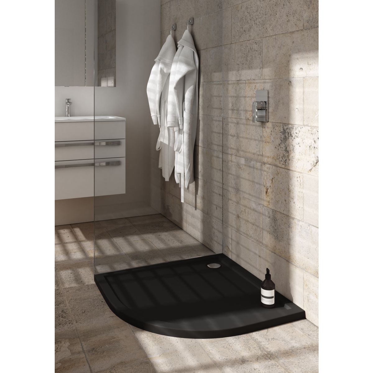 Die Serie Caspar New Black Mat hat die geringste Höhe aller in unserem Angebot befindlichen Duschwannen der Serie Standard Plus. Die Duschwannen dieser Serie können schwellenlos montiert werden. Eine solche Montage erhöht den Komfort für ältere Menschen oder Personen mit eingeschränkter Mobilität, ohne dabei ihren einzigartigen Charakter zu verlieren. Die Serie Caspar New Black Mat ist ein Klassiker mit einem Hauch von Modernität. Diese Duschwannen haben eine glatte Oberfläche in der sehr modischen Farbe Mattschwarz (RAL 9004). Neben der Duschwanne enthält das Set einen hochwertigen, von oben zu reinigenden Siphon (⌀90 mm, Durchfluss 66 l/min, Höhe 5,8 cm).