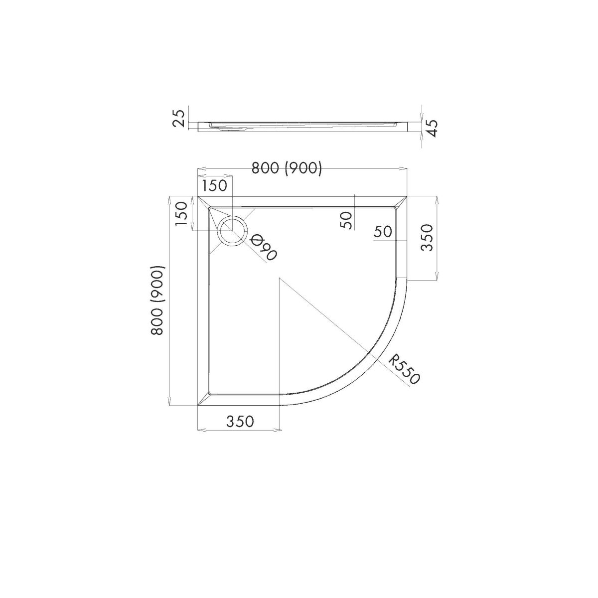 Schedpol Caspar New Black Stone Halbrunde Duschwanne 90x90 cm schwarz 3.2334/C/ST
