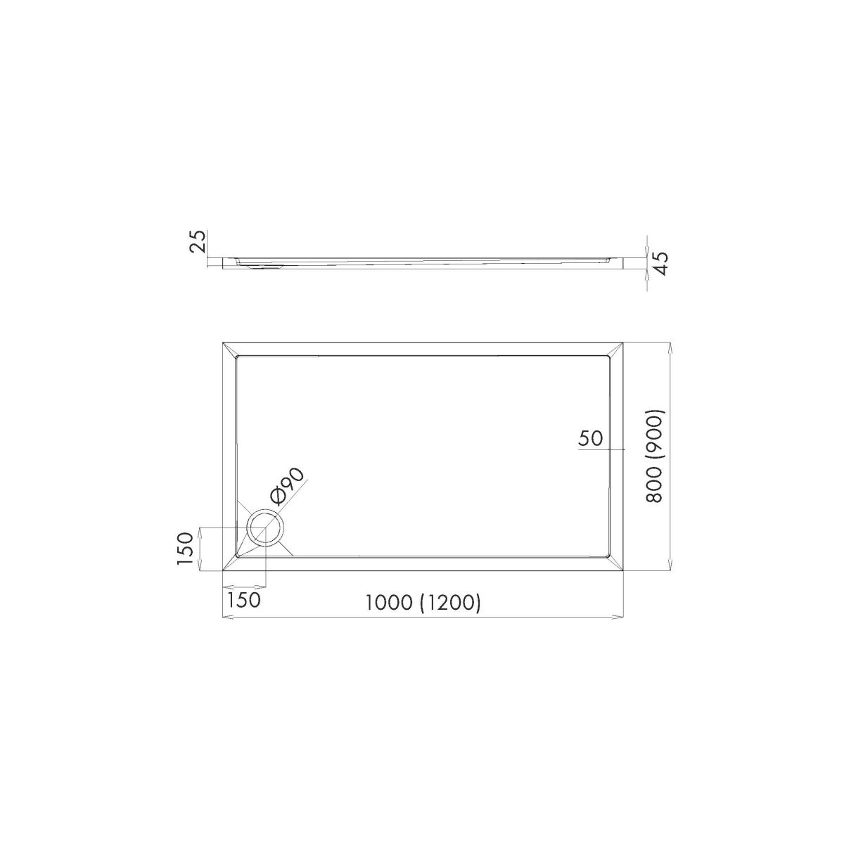 Schedpol Caspar New Cement Stone Rechteckige Duschwanne mit Siphon 100x90 cm zement 3.2345/CT/ST