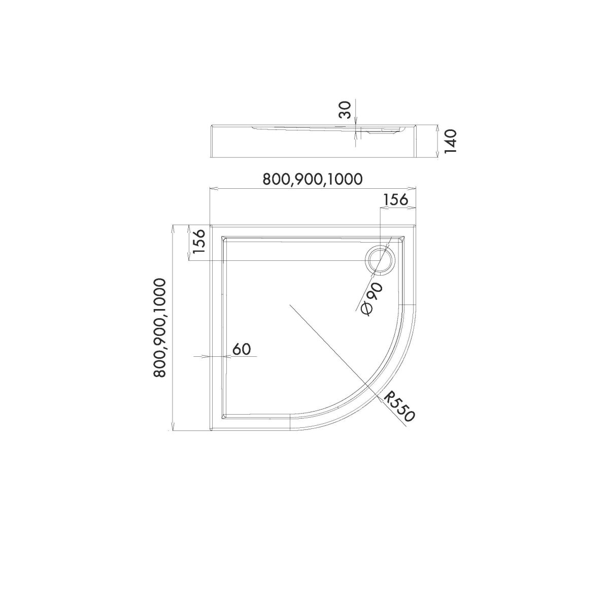 - Radius: 550 mm