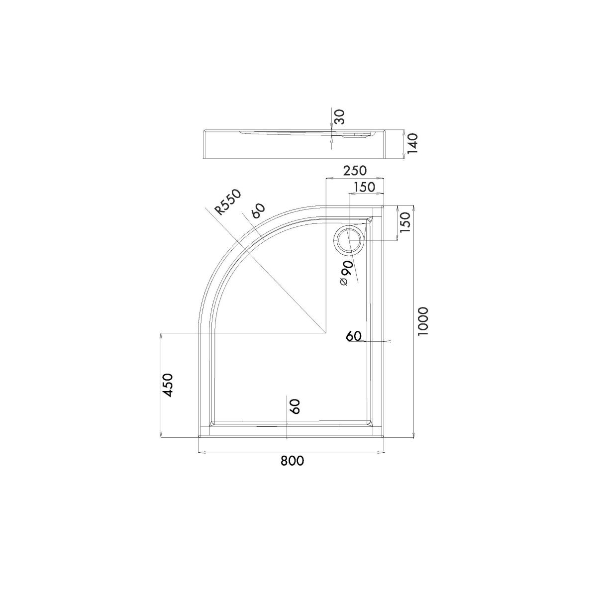- Radius: 550 mm