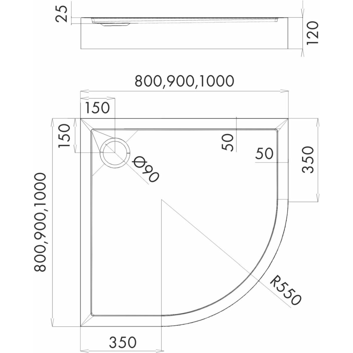 - Radius: 550 mm