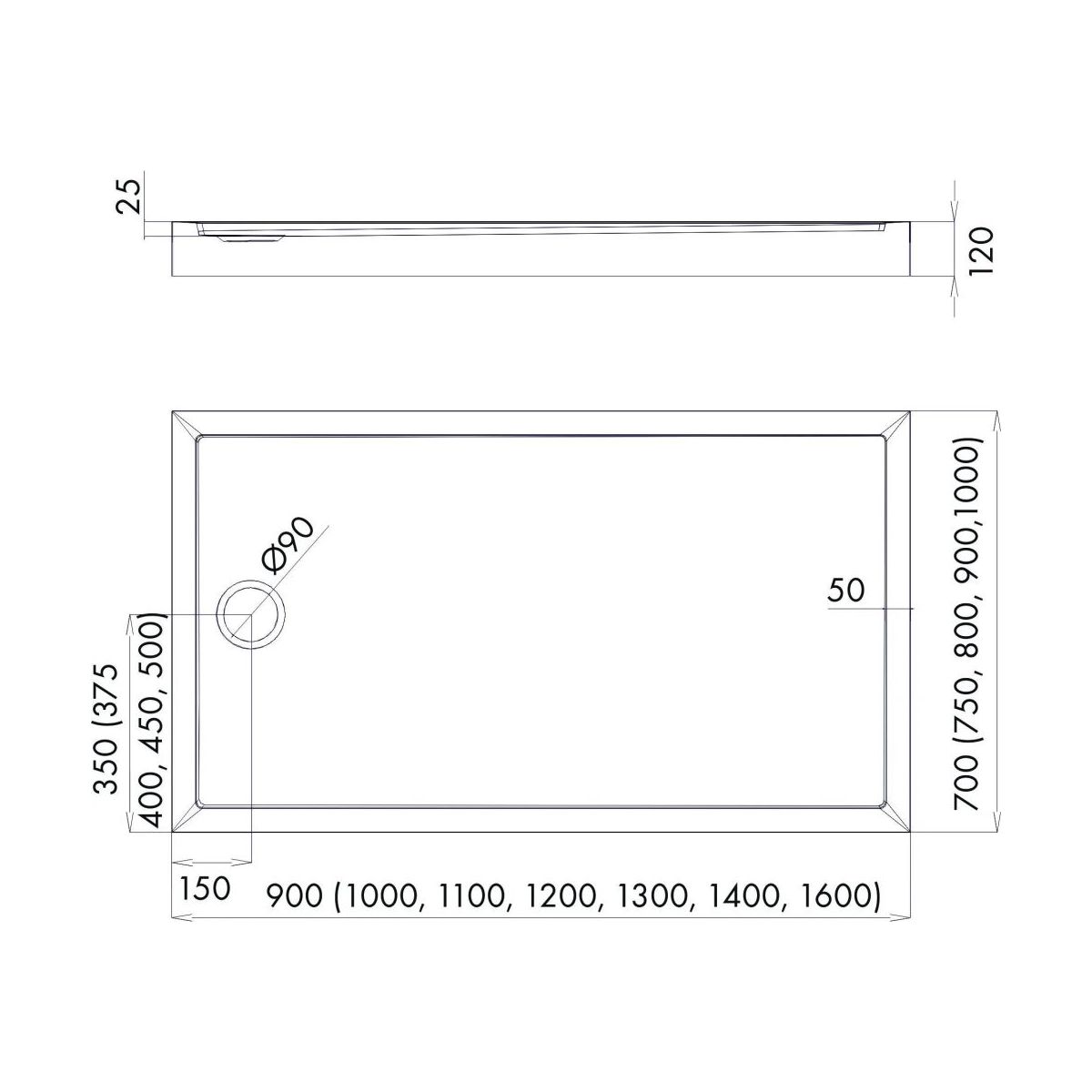 - Abflussdurchmesser: Ø 90 mm