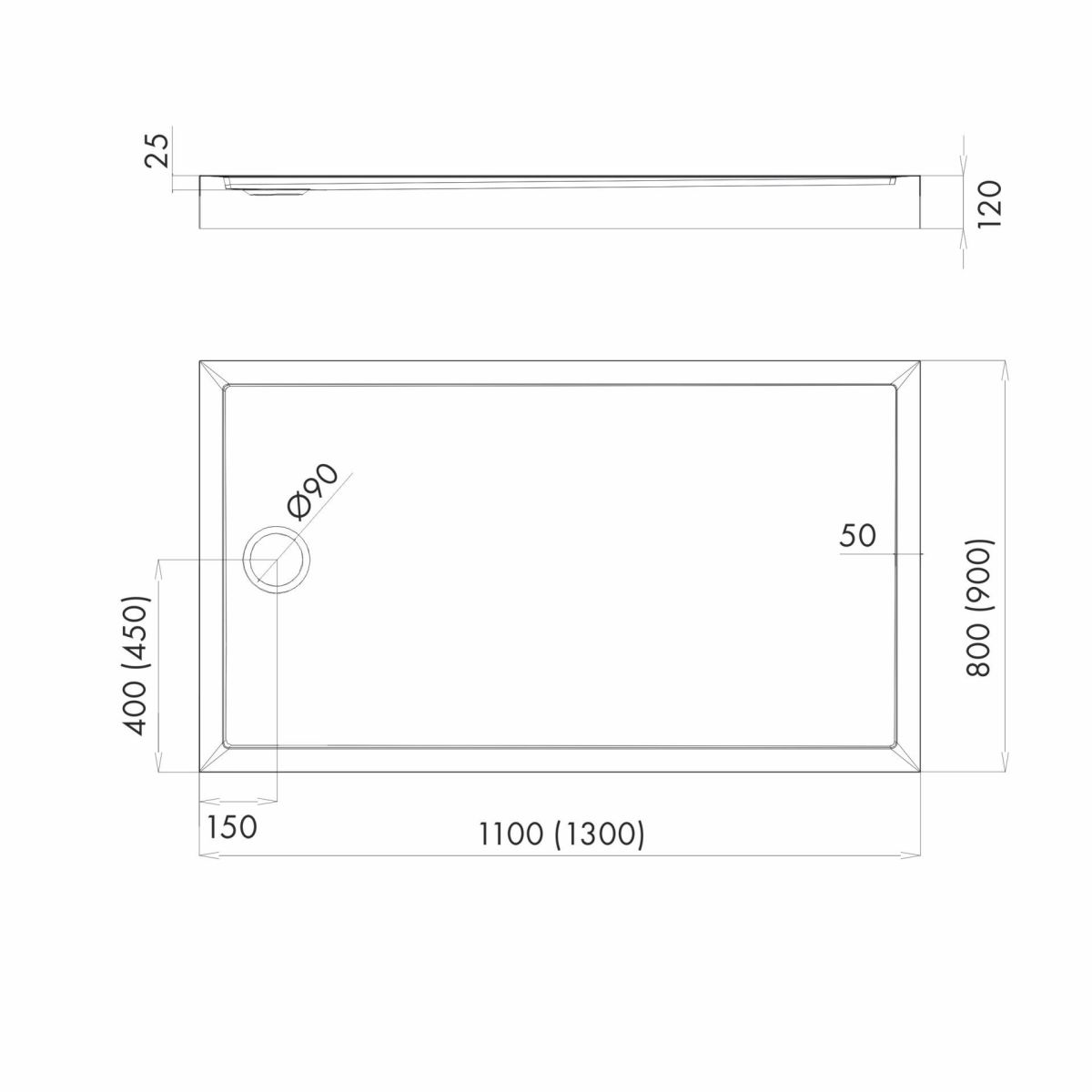 - Abflussdurchmesser: Ø 90 mm