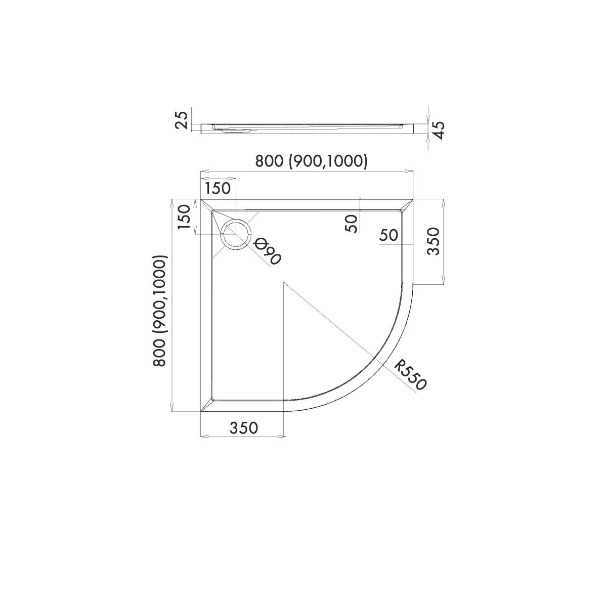 Schedpol Corrina New Halbrunde Duschwanne 100x100 cm weiß 3.4335