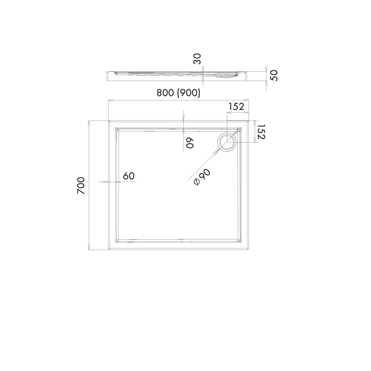- Abflussdurchmesser: Ø 90 mm