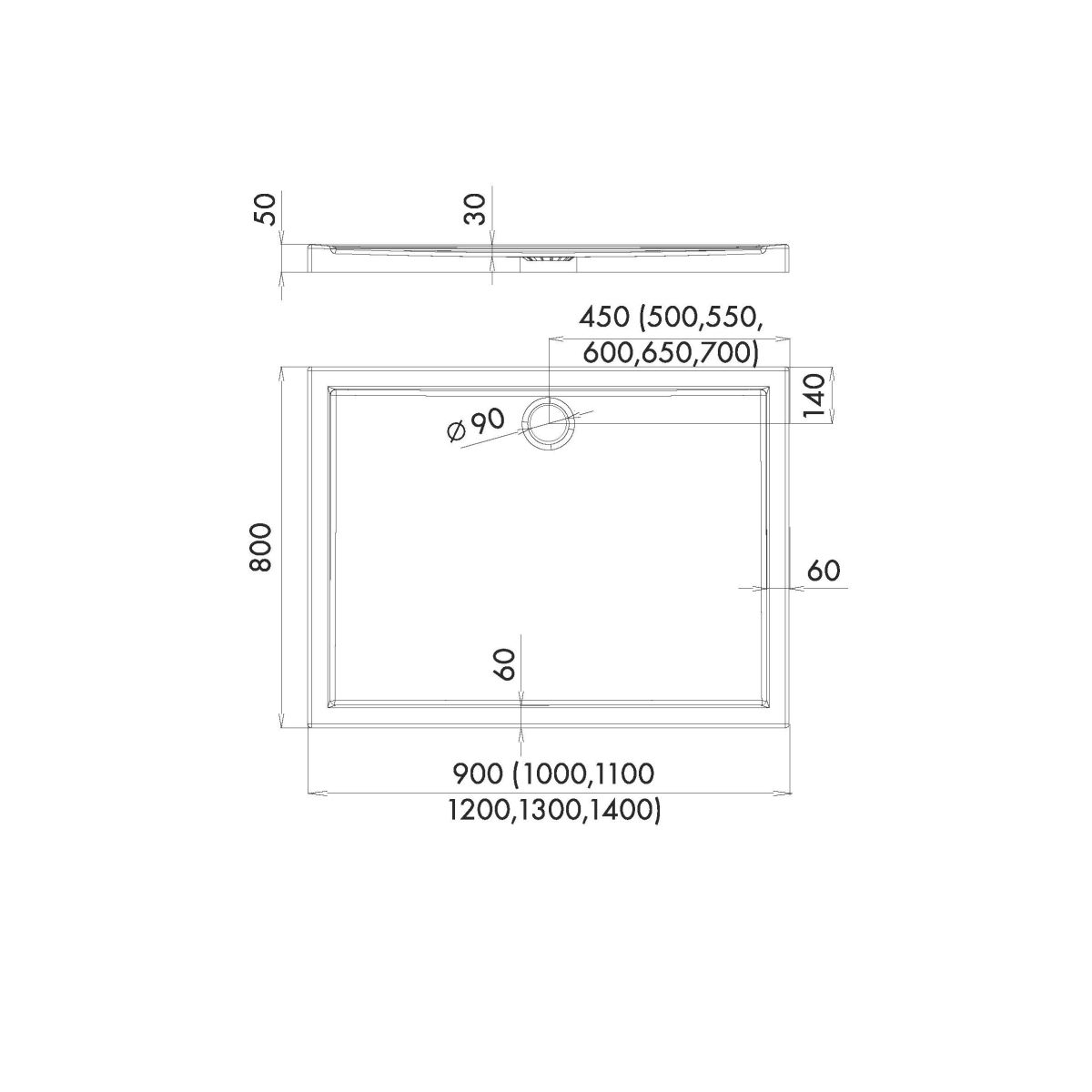 Schedpol Corrina Rechteckige Duschwanne 140x80 cm weiß 3.044