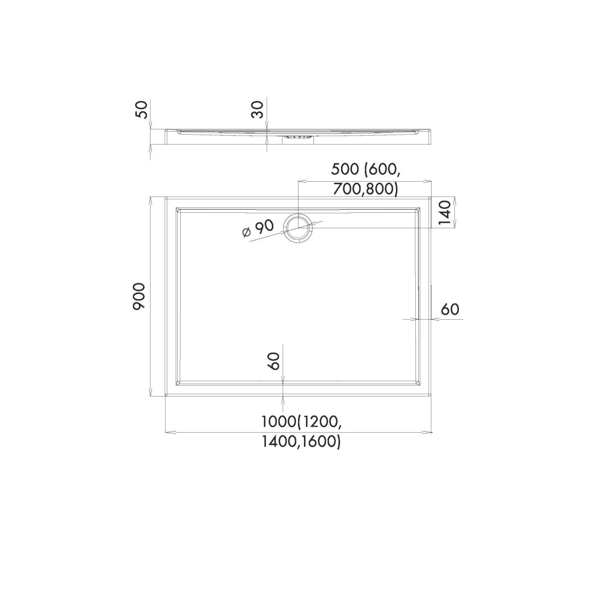 - Abflussdurchmesser: Ø 90 mm