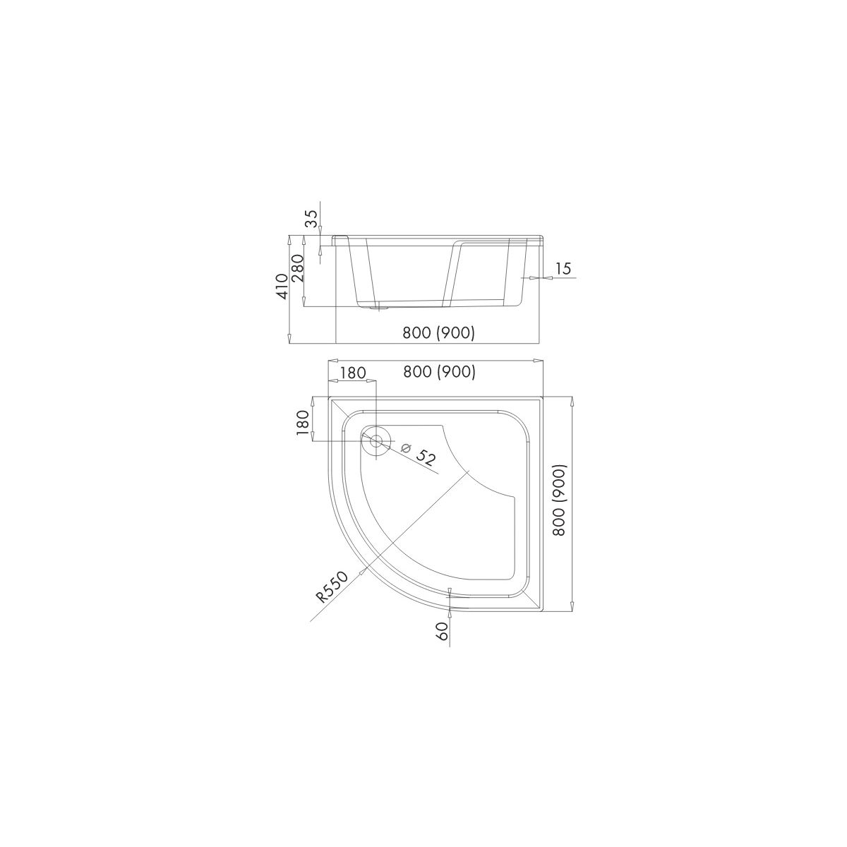 Schedpol Dante Halbrunde Duschwanne 90x90 cm weiß 3.023