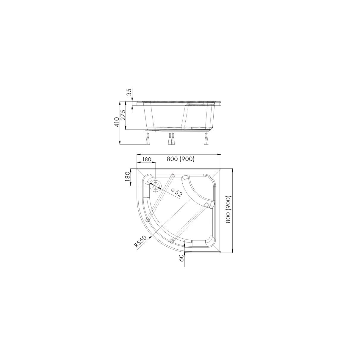Schedpol Doris Halbrunde Duschwanne 90x90 cm weiß 3.223