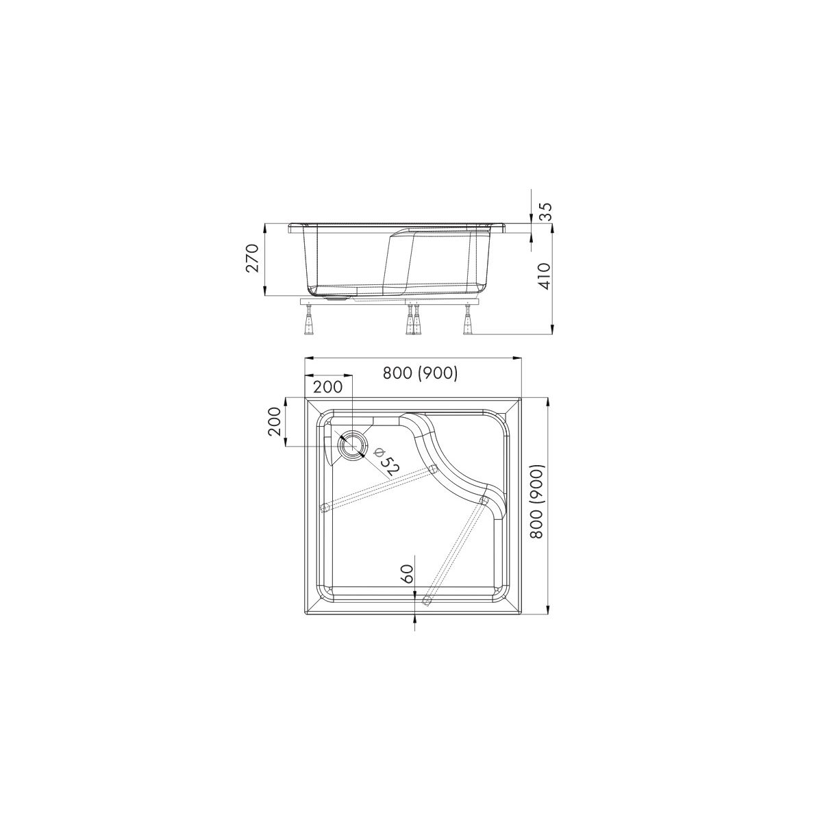 Schedpol Doris Quadratische Duschwanne 90x90 cm weiß 3.233